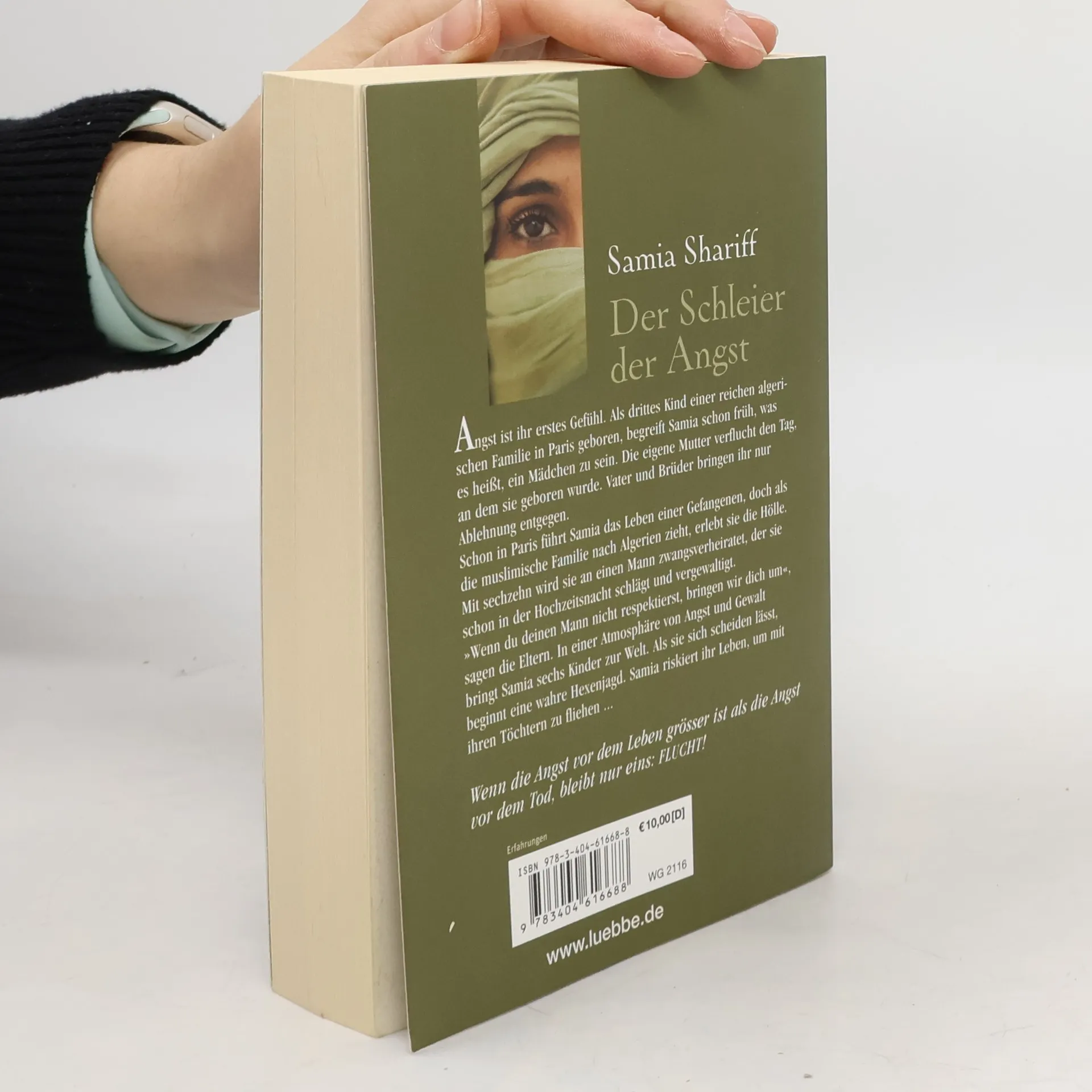 Angst ist ihr erstes Gefühl. Als drittes Kind einer reichen algerischen Familie in Paris geboren, begreift Samia schon früh, was es heißt, ein Mädchen zu sein. Die eigene Mutter verflucht den Tag, an dem sie geboren wurde. Vater und Brüder bringen ihr nur Ablehnung entgegen. Schon in Paris führt Samia das Leben einer Gefangenen, doch als die muslimische Familie nach Algerien zieht, erlebt sie die Hölle. Mit sechzehn wird sie an einen Mann zwangsverheiratet, der sie schon in der Hochzeitsnacht schlägt und vergewaltigt. „Wenn du deinen Mann nicht respektierst, bringen wir dich um“, sagen die Eltern. In einer Atmosphäre von Angst und Gewalt bringt Samia sechs Kinder zur Welt. Als sie sich scheiden lässt, beginnt eine wahre Hexenjagd. Samia riskiert ihr Leben, um mit ihren Töchtern zu fliehen ...