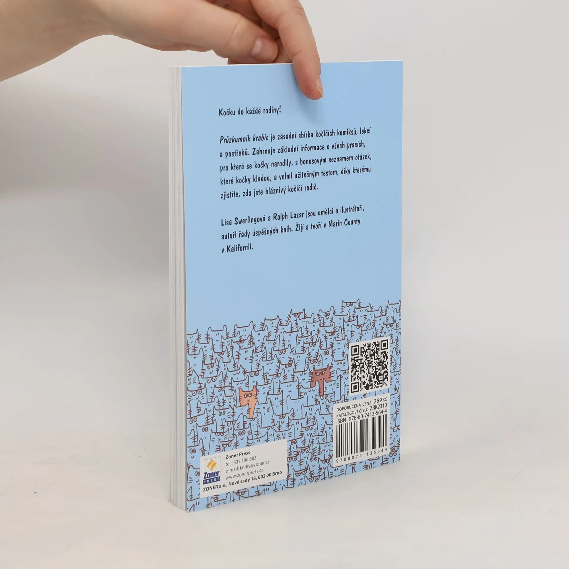 Kočku si nepořídíte, kočka se vám přihodí. I přes veškeré přípravy se stanete bláznivým kočičím rodičem, který sdílí svůj životní prostor s vrnícím čtyřnožcem. Nový obyvatel bytu si bez ostychu vyzkouší, co všechno mu dovolíte, a vy se tváříte, že věci jako křeslo po babičce nebo sklenice s vodou už stejně dávno chtěly pryč. Dvojice autorů Ralph Lazar a Lisa Swerlingová vám ukáže, že kočku potřebujete, a ideálně několik. Kdo jiný by za vás plnil všechny důležité úkoly? Kočka vás zahřeje a dá na vás pozor. Musíte si uvědomit, že žijete u své kočky, která to moc dobře ví. I když se tváří nezúčastněně, pozorně vás sleduje a ví, kdy potřebujete pomoc – ať už jde o odmotání toaletního papíru nebo zalehnutí, když se chystáte do práce. Samozřejmě musí ochutnat vaše jídlo, aby se ujistila, že se neotrávíte, a provést korekturu vaší prezentace. Vaše kočka má s vámi spoustu práce, a proto musí tolik spinkat, papat a nechat se chovat, když ona chce. Tato kniha jasně dokazuje, že bez koček bychom byli zkrátka v háji.