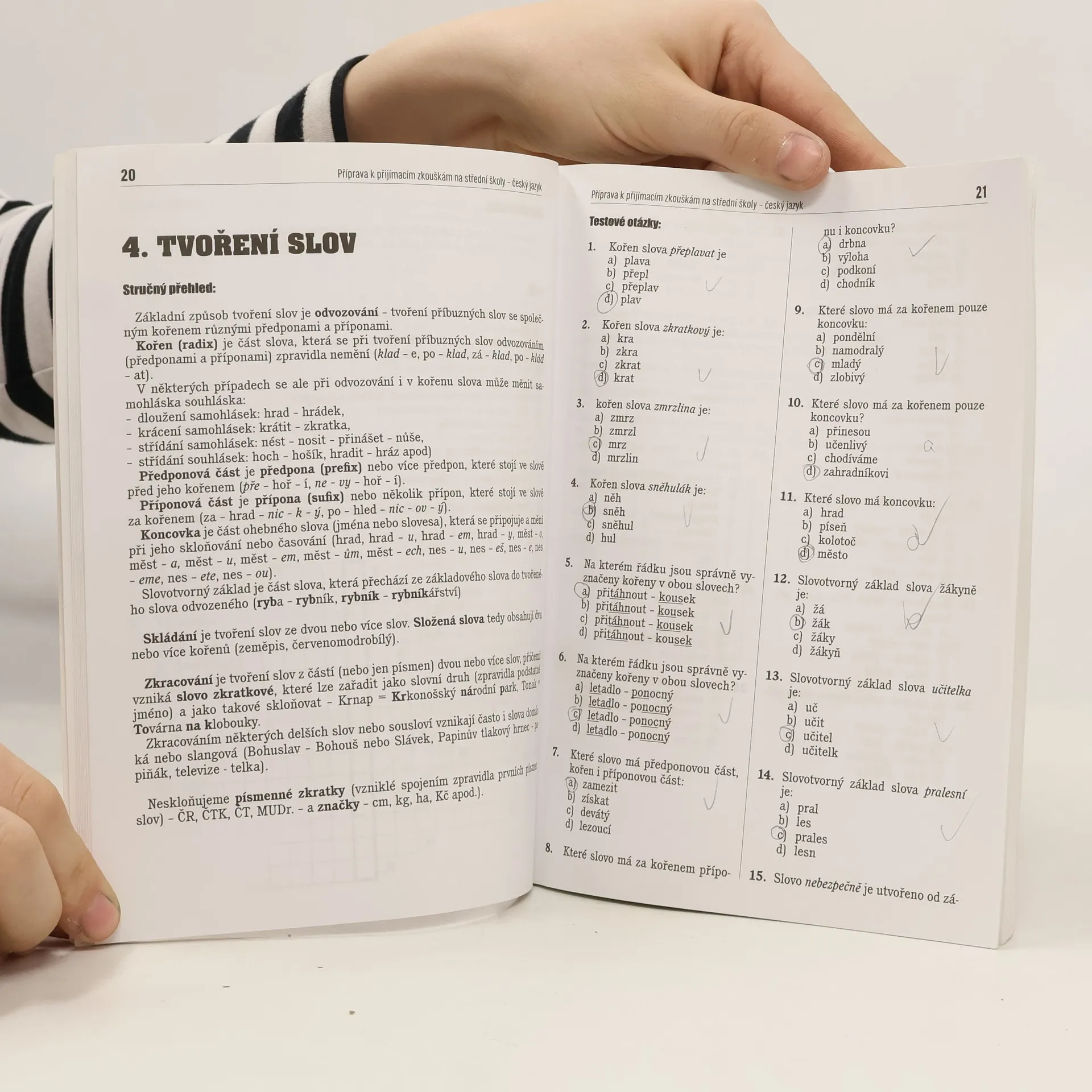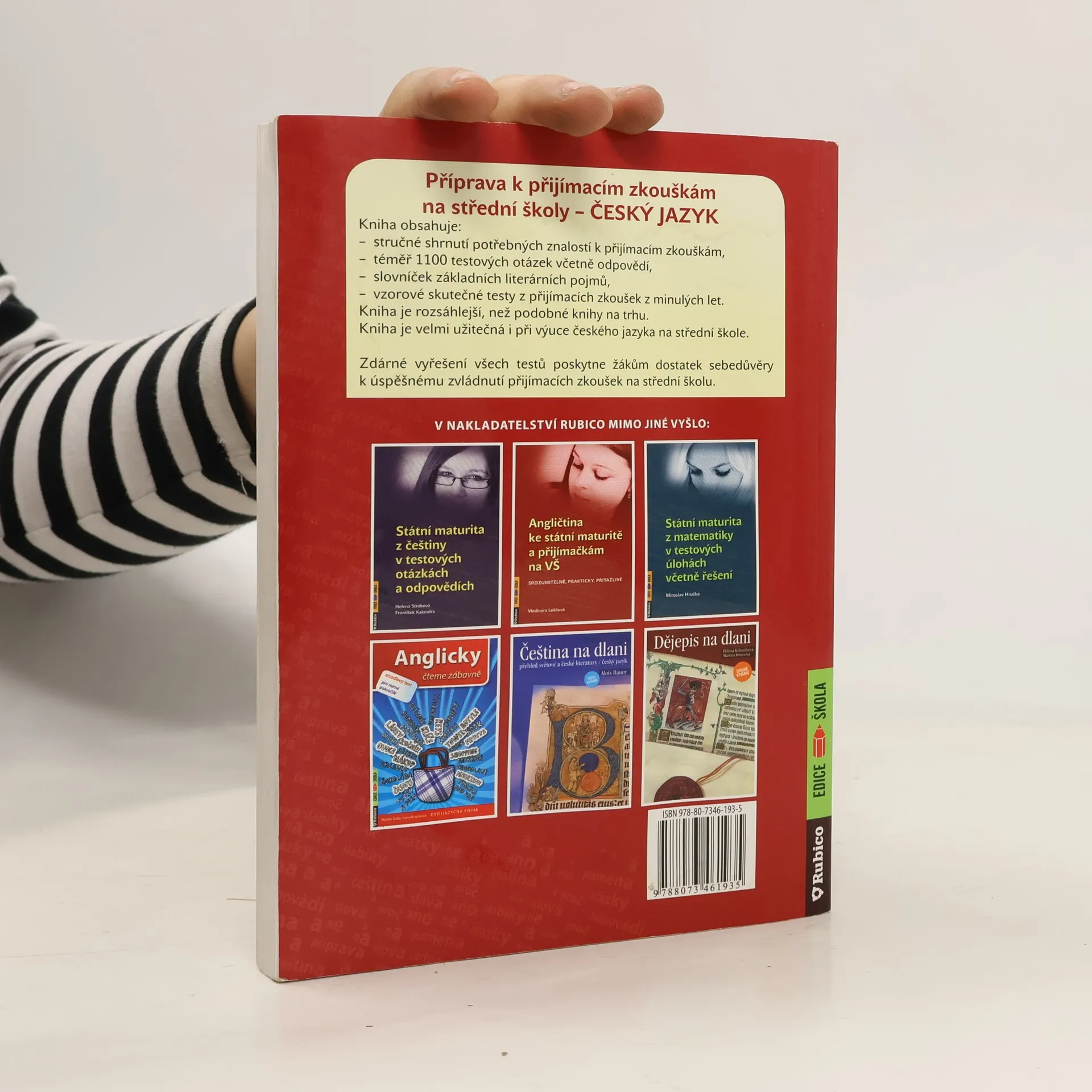 Kniha obsahuje: - stručné shrnutí potřebných znalostí k přijímacím zkouškám, - téměř 1100 testových otázek včetně odpovědí, - slovníček základních literárních pojmů. Kniha je rozsáhlejší, než podobné knihy na trhu. Kniha obsahuje vzorové skutečné testy z přijímacích zkoušek z minulých let. Kniha je velmi užitečná i při výuce českého jazyka na střední škole. Zdárné vyřešení všech testů poskytne žákům dostatek sebedůvěry k úspěšnému zvládnutí přijímacích zkoušek na střední školu.