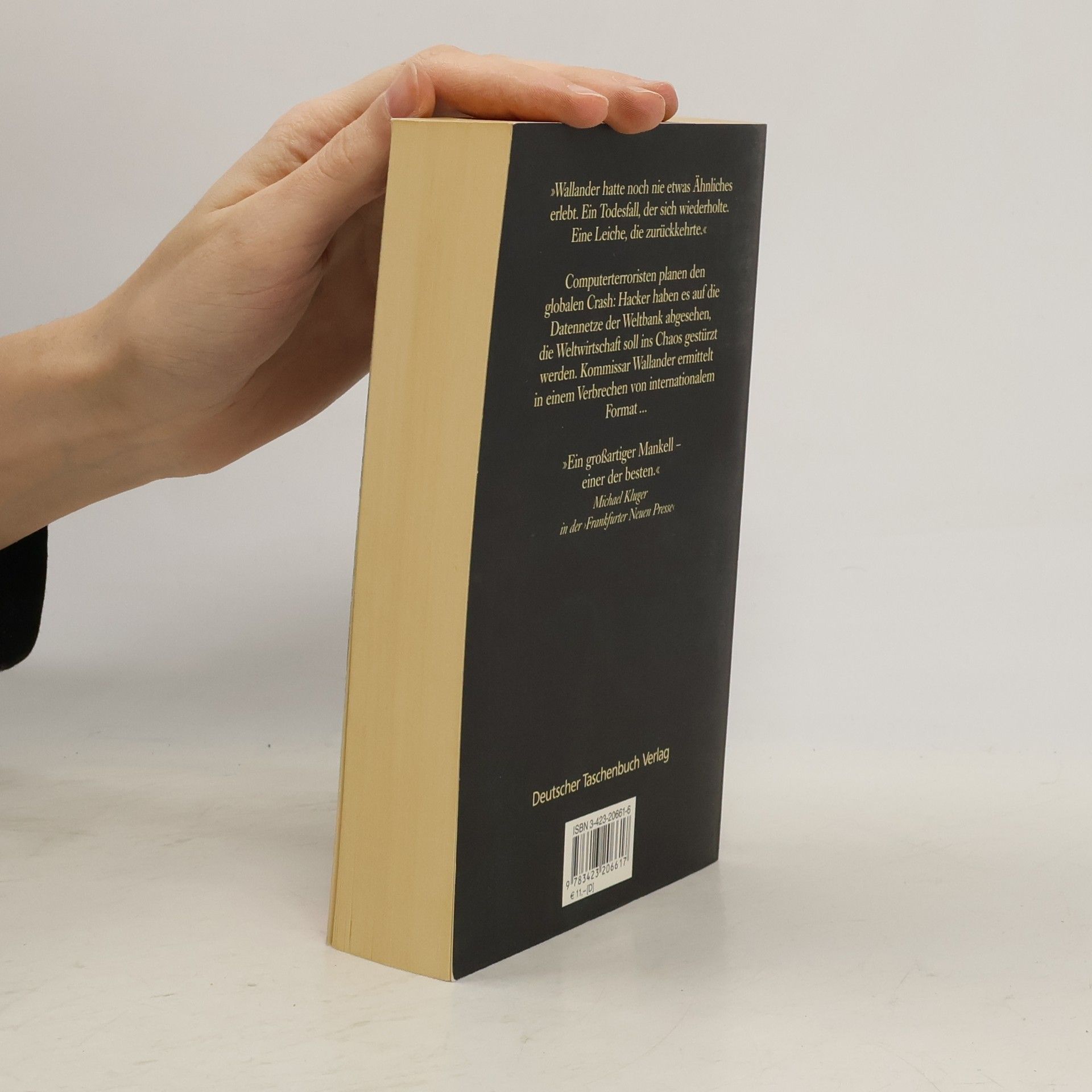 Hacker planen den globalen Crash: die Weltwirtschaft soll ins Chaos gestürzt werden. Wallanders achter Fall. Zwei junge Mädchen überfallen einen Taxifahrer, betäuben ihn mit einem Hammer und töten ihn mit einem Küchenmesser. Bei der Vernehmung zeigen sie keinerlei Schuldgefühl, was Wallander schockiert. Er fragt sich, ob junge Menschen wirklich nichts dabei finden, jemanden hinterrücks zu ermorden. Kurz darauf geschehen merkwürdige Ereignisse: Ein Mann fällt vor einem Bankautomaten tot um, seine Leiche wird aus der Pathologie gestohlen und zurückgebracht. In ganz Schonen fällt der Strom aus, und in einer Transformatorstation wird eine verkohlte Leiche entdeckt. Wallander ist überzeugt, dass etwas Größeres hinter all dem steckt. Die Fälle von Kurt Wallander sind in folgender Reihenfolge: 1. Mörder ohne Gesicht 2. Hunde von Riga 3. Die weiße Löwin 4. Der Mann, der lächelte 5. Die falsche Fährte 6. Die fünfte Frau 7. Mittsommermord 8. Die Brandmauer
