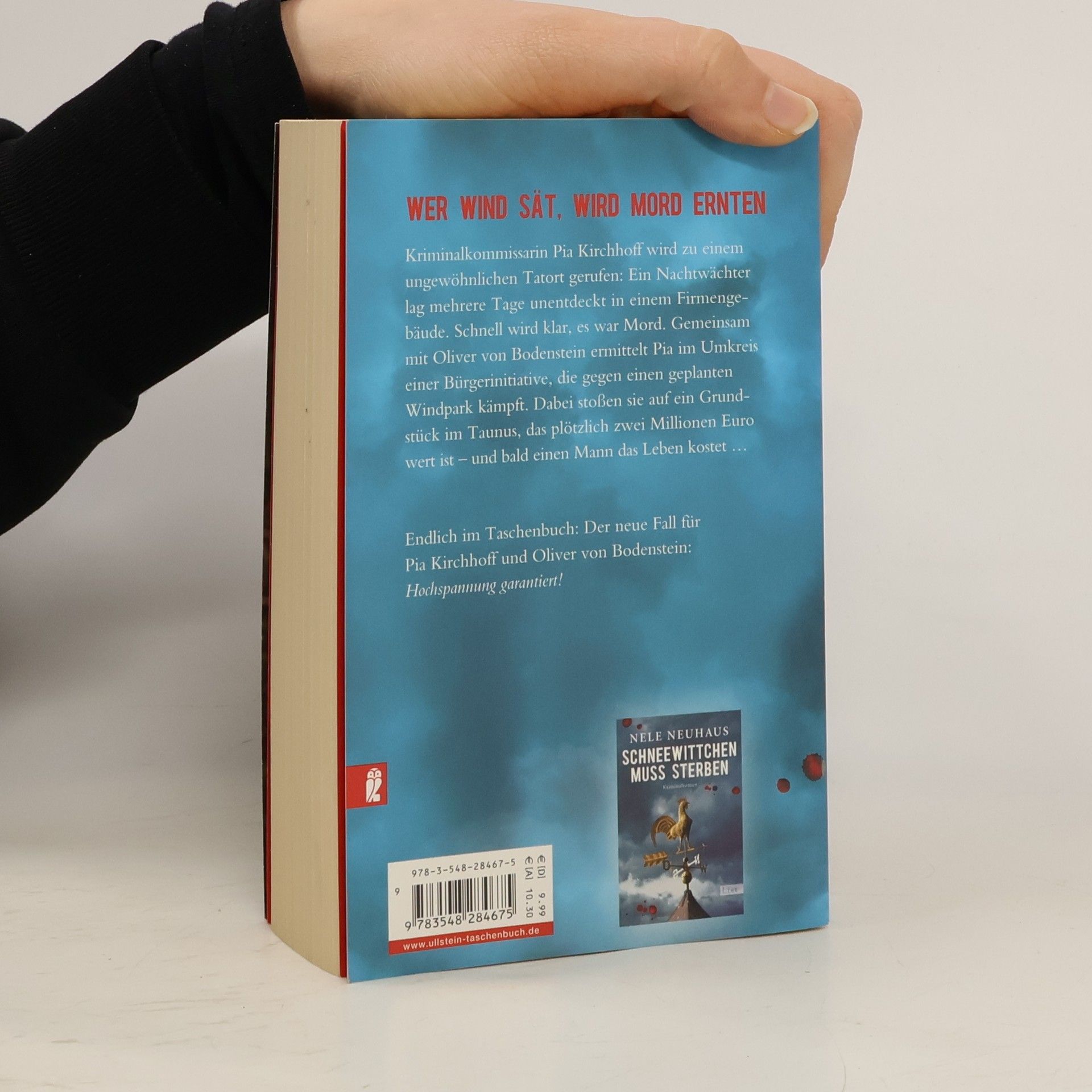 Der Bestseller jetzt im Taschenbuch Kriminalkommissarin Pia Kirchhoff wird zu einem ungewöhnlichen Tatort gerufen: Ein toter Nachtwächter lag mehrere Tage unentdeckt in einem Firmengebäude. Schnell wird klar, es war Mord. Gemeinsam mit Oliver von Bodenstein ermittelt Pia im Umkreis einer Bürgerinitiative, die gegen einen geplanten Windpark kämpft. Dabei stoßen sie auf ein Grundstück im Taunus, das plötzlich zwei Millionen wert ist – und einen Mann das Leben kostet …