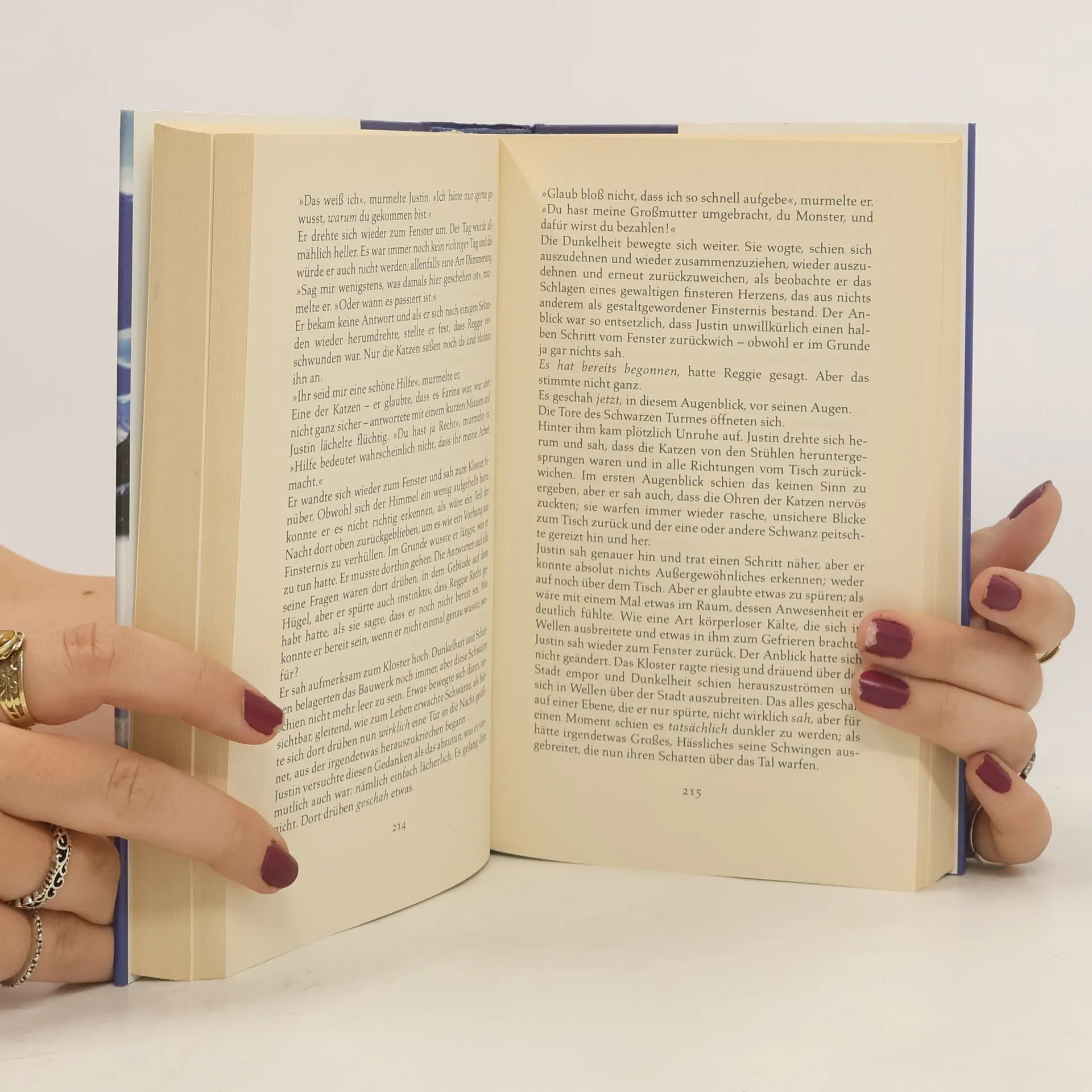 An dem Tag, an dem Justins Großmutter die Treppe hinunterstürzt und ins Krankenhaus kommt, beginnt sich nicht nur das Leben ihres Enkels zu verändern. Etwas Unheimliches legt sich über die kleine Stadt, die durch dichten Schneefall von der Außenwelt abgeschnitten wird, und macht die Menschen aggressiv. Die Katzen seiner Großmutter zeigen Justin den Ursprung dieser Bedrohung: die brandgeschwärzten Ruinen des alten Klosters auf dem Hügel. Dort stand im Mittelalter der Schwarze Turm, in dem der „Dunkle“ mit seinen bösen Kräften herrschte. Justins Großmutter, als Hexe verschrien, besaß die Gabe, diese Kräfte zurückzuhalten. Nun muss Justin diese Aufgabe übernehmen. Dabei stehen ihm die Katzen und ein geheimnisvolles Mädchen zur Seite. Doch die Tore zu der anderen, unheilbringenden Welt sind bereits geöffnet. Der Stadt und ihren Menschen droht deer Untergang, wenn es Justin nicht gelingt, die höllischen Mächte zu bannen. Ein aussichtslos scheinender Kampf beginnt, in den die Katzen und das Mädchen immer wieder entscheidend eingreifen. Aber dann steht Justin dem „Dunklen“ selbt gegenüber.