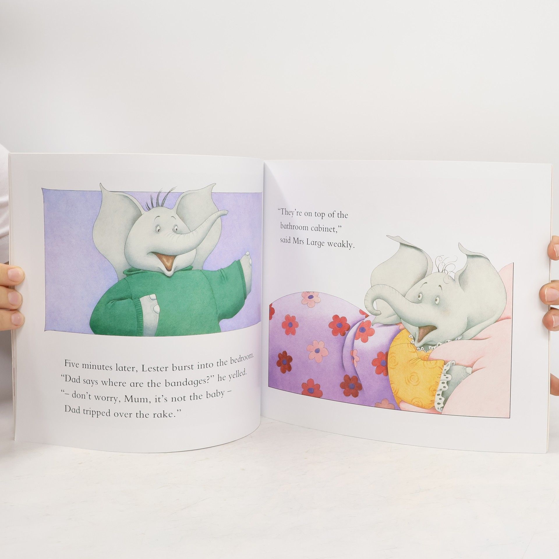 When Mr. Large the elephant tells his ill wife he will take care of the family while she rests in bed, she finds it difficult to relax with all the commotion in the house.
