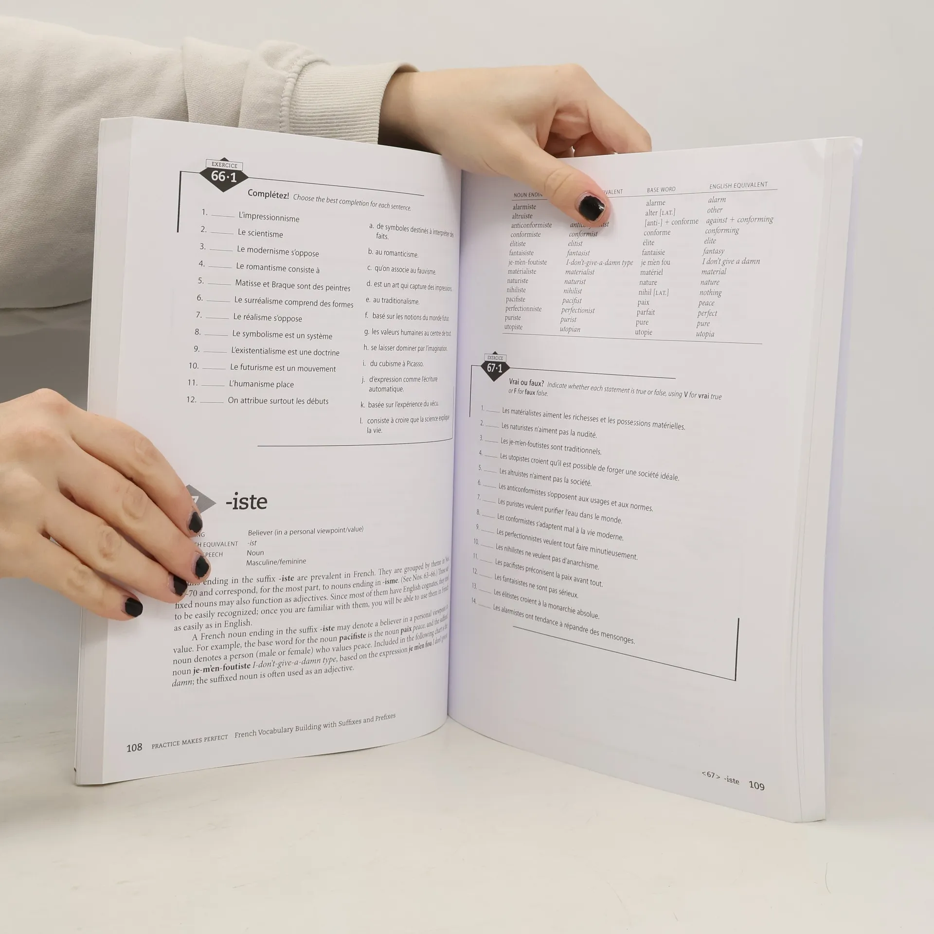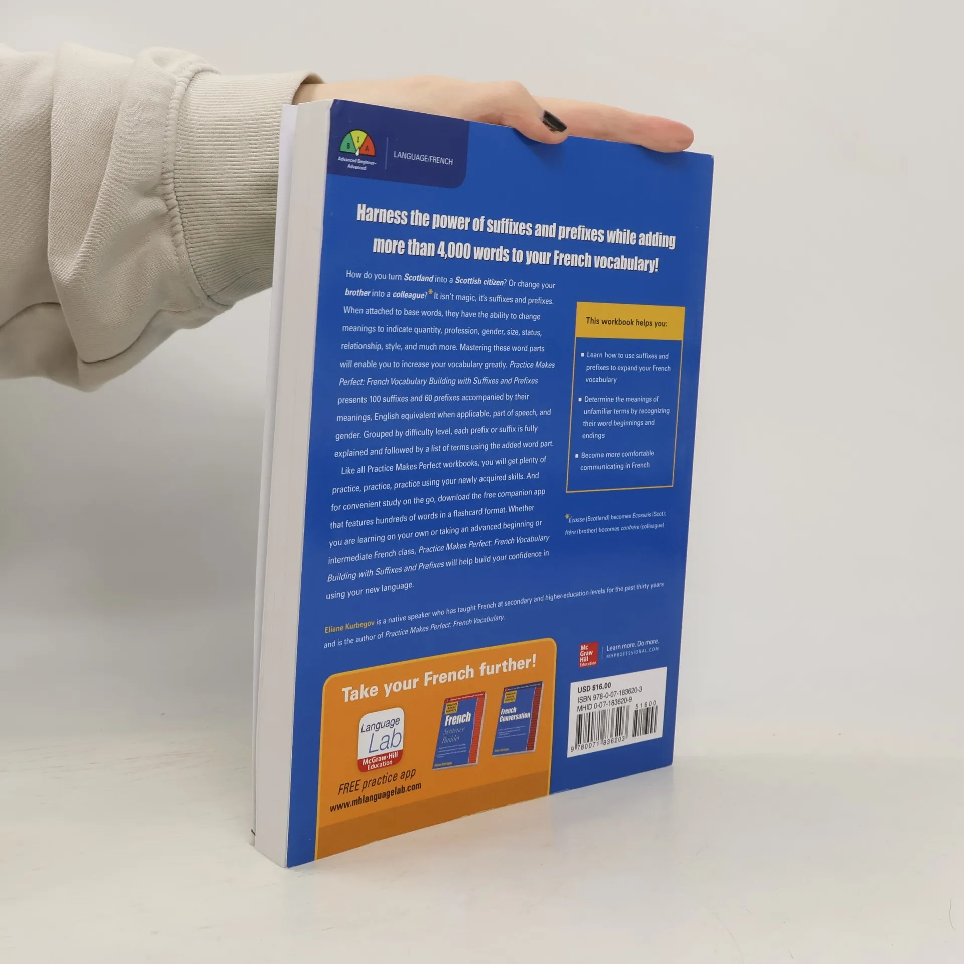 Harness the power of suffixes and prefixes to expand your French vocabulary by over 4,000 words! Transform words like Scotland into a Scottish citizen or brother into colleague using these essential word parts. Suffixes and prefixes can change meanings to indicate quantity, profession, gender, size, status, and more. This workbook presents 100 suffixes and 60 prefixes, detailing their meanings, English equivalents, parts of speech, and gender. Organized by difficulty, each entry is explained and followed by a list of terms incorporating the word part. True to the Practice Makes Perfect series, it offers ample practice to reinforce your skills. Additionally, a free companion app provides hundreds of words in a flashcard format for on-the-go study. Whether you're self-studying or enrolled in an advanced beginning or intermediate French class, this resource will boost your confidence in using the language. Learn to use suffixes and prefixes effectively, decipher unfamiliar terms through their components, and enhance your communication skills in French.