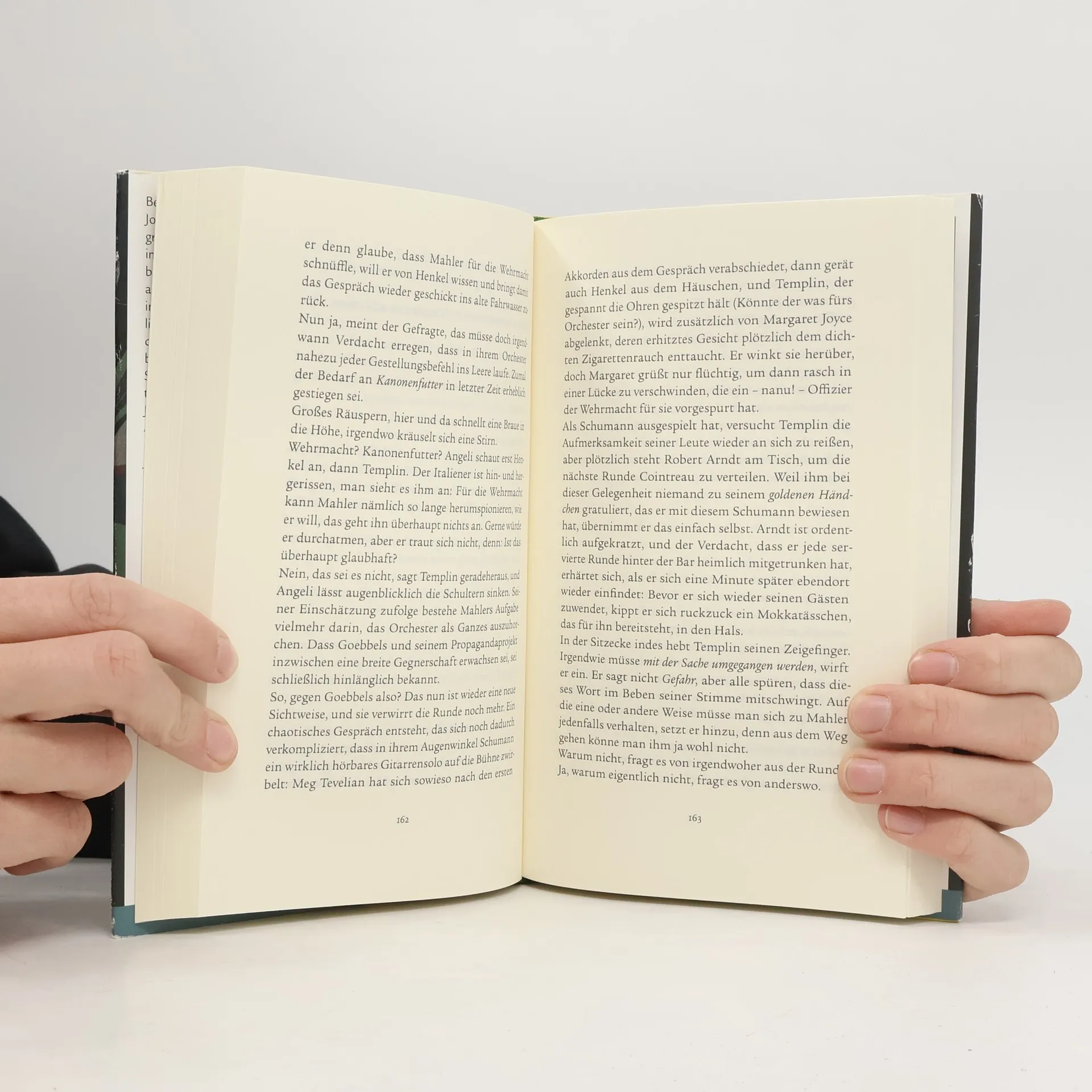 Berlin, Frühjahr 1940. Auf Beschluss von Joseph Goebbels wird für den Auslandsradiosender Germany Calling eine Big Band gegründet, die internationale Bekanntheit erlangt. Die besten europäischen Musiker, darunter Ausländer, Juden und Homosexuelle, spielen im Dienst der NS-Propaganda um ihr Überleben – ausgerechnet mit Jazz, der als „entartet“ galt. Bis zu 6 Millionen britische Haushalte hören täglich die Swing-Stücke mit anti-alliierten Hetztexten und dem Star-Moderator William Joyce alias Lord Haw-Haw, der nach seinem Aufstieg in der British Fascist Union nach Berlin geflohen war. Joyce soll den Erfolg „an der Front im Äther“ literarisch dokumentieren lassen. Der ausgewählte Schweizer Schriftsteller Fritz Mahler findet sich im Zuge seines Auftrags, einen Propagandaroman über die Band zu schreiben, in verruchten Berliner Clubs und illegalen Jazzkellern wieder. Er kämpft mit übermäßigem Cointreau-Konsum und muss die Skepsis der Musiker sowie die Erwartungen seiner gefährlichen Auftraggeber überstehen. Demian Lienhard erzählt die fast wahre Geschichte von Mr. Goebbels Jazz Band und William Joyce. Mit furiosem Tempo verfolgt er seine Figuren durch New York, Galway, London, Manchester, Zürich, Danzig und Berlin und deckt den menschenverachtenden Zynismus des NS-Staats sowie die Perfidie der Nazi-Propaganda auf.