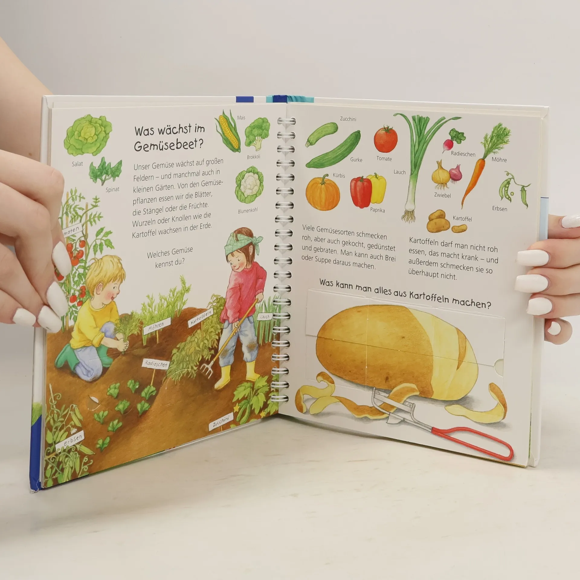 Guten Appetit! Am Esstisch versammelt sich oft die ganze Familie, wo genascht und gekleckert wird, aber auch Meinungsverschiedenheiten über Geschmäcker auftreten. Warum essen und trinken wir eigentlich? Wo wachsen Obst und Gemüse, und von welchen Tieren stammt unser Essen? Großformatige Bilder und zahlreiche Klappen laden Kinder ein, Antworten auf diese Fragen selbst zu entdecken. In vertrauten Alltagsszenen erfahren sie, wie gemeinsam gekocht und gegessen wird und wie sie in der Küche mithelfen können. Die Sachbuchreihe für Kinder von 2-4 Jahren beantwortet die vielen Fragen, die Kinder täglich stellen. Themen wie Feuerwehr, Winterverhalten von Tieren oder die Notwendigkeit des Zähneputzens werden altersgerecht und mit viel Liebe zum Detail behandelt. Die Reihe ist auf kleine Hände und die Bedürfnisse der Kleinsten abgestimmt. Klare, liebevolle Bilder, kurze Sachtexte und handliche Klappen veranschaulichen Bewegungen und gewähren überraschende Einblicke. So können Kinder selbstständig entdecken. Der Spaß am eigenhändigen Erforschen, die liebevolle Gestaltung und die hochwertige Ausstattung sorgen für langanhaltende Freude an jedem Buch.