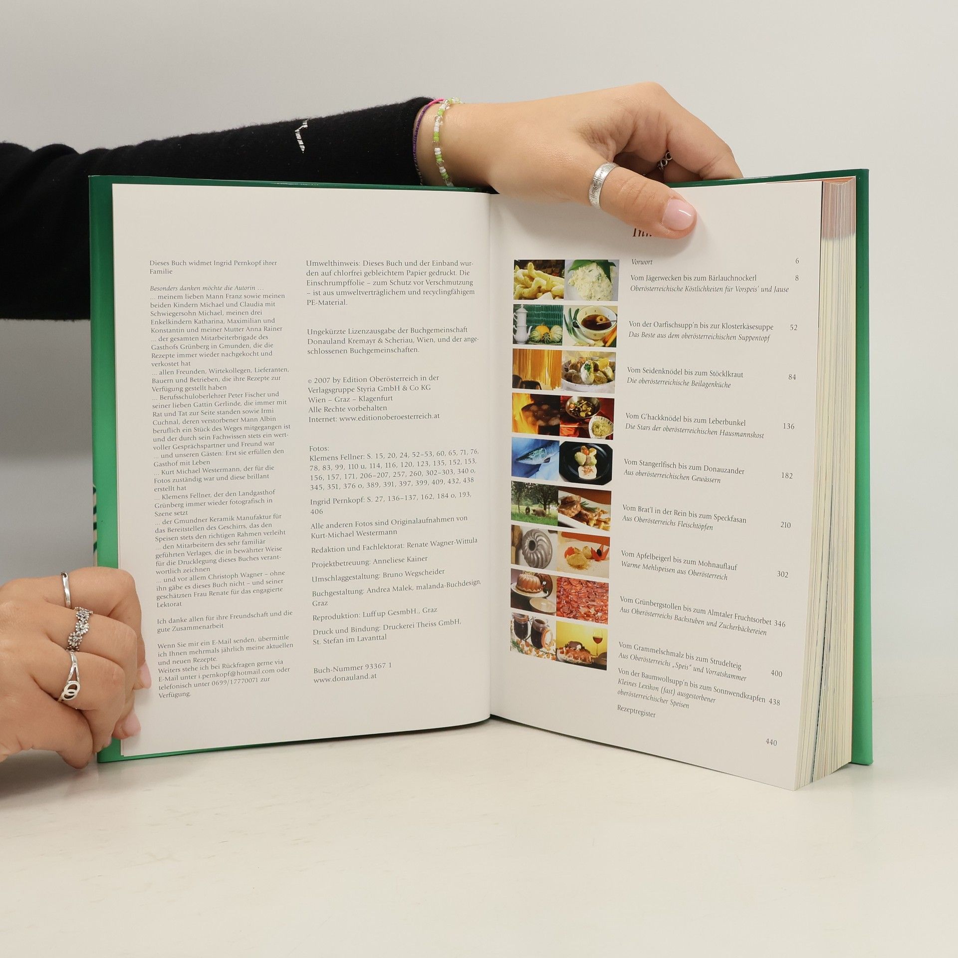 „Wenn man keinen Knödel ißt“, so ein oberösterreichisches Sprichwort, „so hat man den ganzen Tag Hunger.“ Der Knödel ist ein ideales Symbol der Küche des Landes ob der Enns und dient als kulinarische Trademark. Alte oberösterreichische Kochbücher sind wahre Fundgruben für viele vergessene Knödelrezepte wie Brandknödel, braune Grießknödel, gebackene Reisknödel und viele andere, die in dieser Rezeptsammlung zu finden sind. Zum Knödel gehört in Oberösterreich selbstverständlich das „Bratl“ und ein warmer, mit Speck „abgeschmalzter“ Krautsalat. Dennoch wäre es ein Fehler, die oberösterreichische Küche nur auf Bratl und Knödel zu reduzieren. Die Tische in den vier oberösterreichischen Vierteln sind reich gedeckt mit Köstlichkeiten aus den süßen Gewässern, Wäldern, Spargelfeldern und Obstbäumen, sowie aus Konditoreien, Biozuchten und Kleinbrauereien. Die Qualität der landwirtschaftlichen Produkte ist heute so hoch und vielfältig wie nie zuvor. Ingrid Pernkopf, bekannt aus der TV-Serie „Schlosshotel Orth“, hat in ihrem umfangreichen Archiv recherchiert und zusammen mit Bestsellerautor Christoph Wagner das umfassendste Standardwerk der oberösterreichischen Küche veröffentlicht, das jemals zwischen Inn-, Mühl-, Traun- und Hausruckviertel erschienen ist.