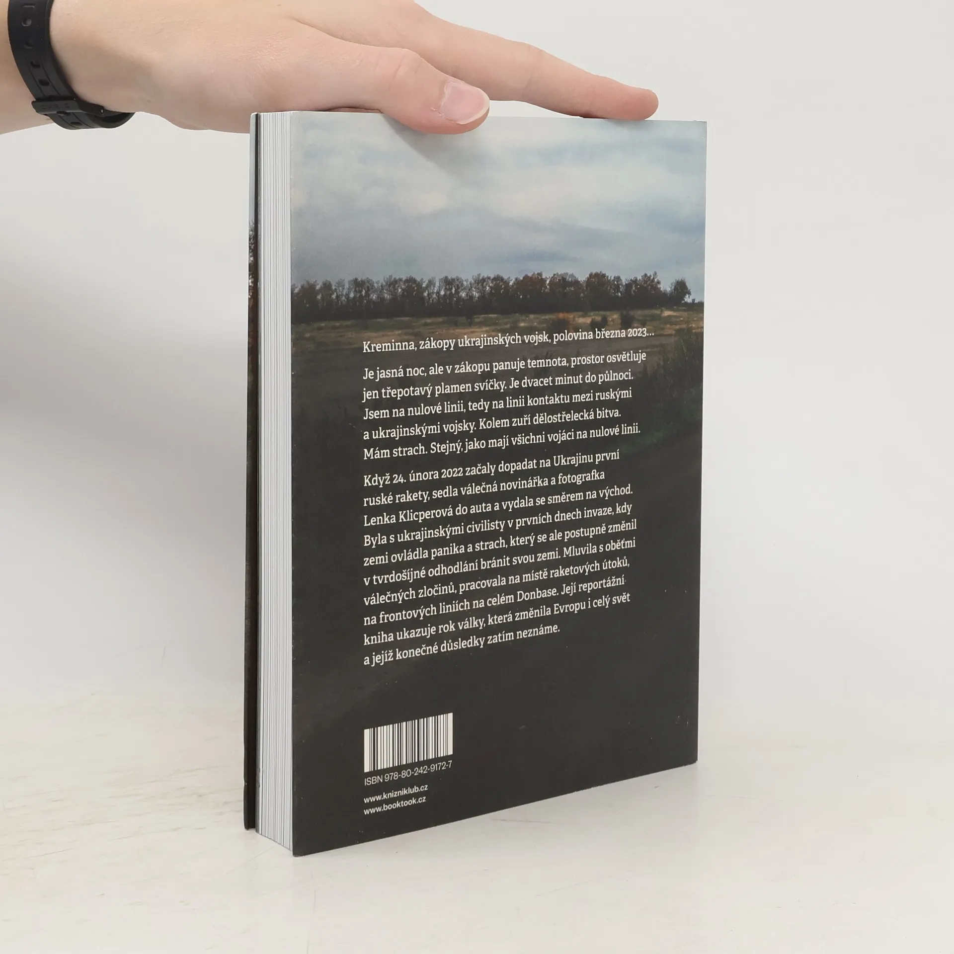 Kreminna, zákopy ukrajinských vojsk, polovina března 2023. Je jasná noc, ale v zákopu panuje temnota, prostor osvětluje jen třepotavý plamen svíčky. Je dvacet minut do půlnoci. Jsem na nulové linii, tedy na linii kontaktu mezi ruskými a ukrajinskými vojsky. Kolem zuří dělostřelecká bitva. Mám strach. Stejný, jako mají všichni vojáci na nulové linii. Když 24. února 2022 začaly dopadat na Ukrajinu první ruské rakety, sedla válečná novinářka a fotografka Lenka Klicperová do auta a vydala se směrem na východ. Byla s ukrajinskými civilisty v prvních dnech invaze, kdy zemi ovládla panika a strach, který se ale postupně změnil v tvrdošíjné odhodlání bránit svou zemi. Mluvila s oběťmi válečných zločinů, pracovala na místě raketových útoků, na frontových liniích na celém Donbase. Její reportážní kniha ukazuje rok války, která změnila Evropu i celý svět a jejíž konečné důsledky zatím neznáme.