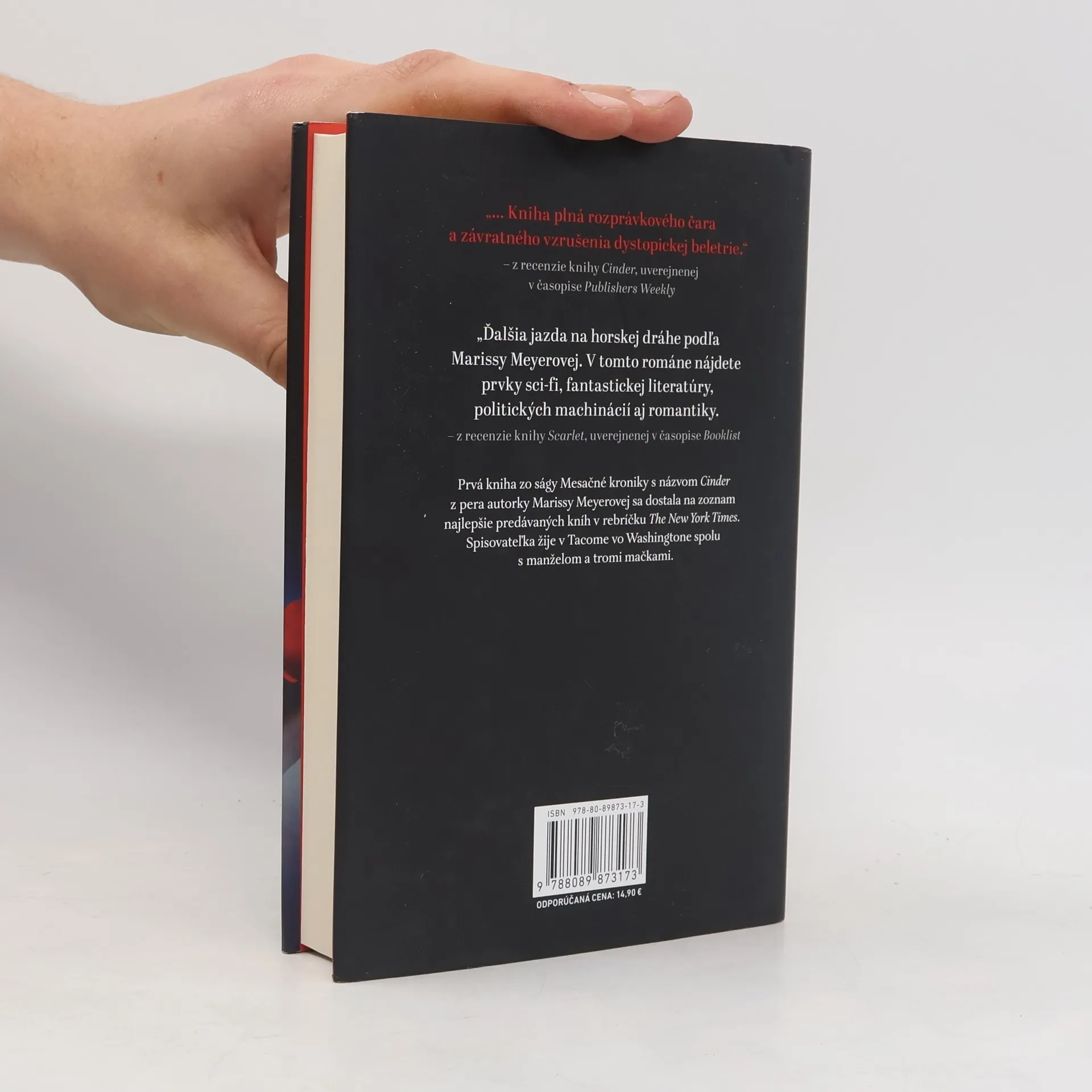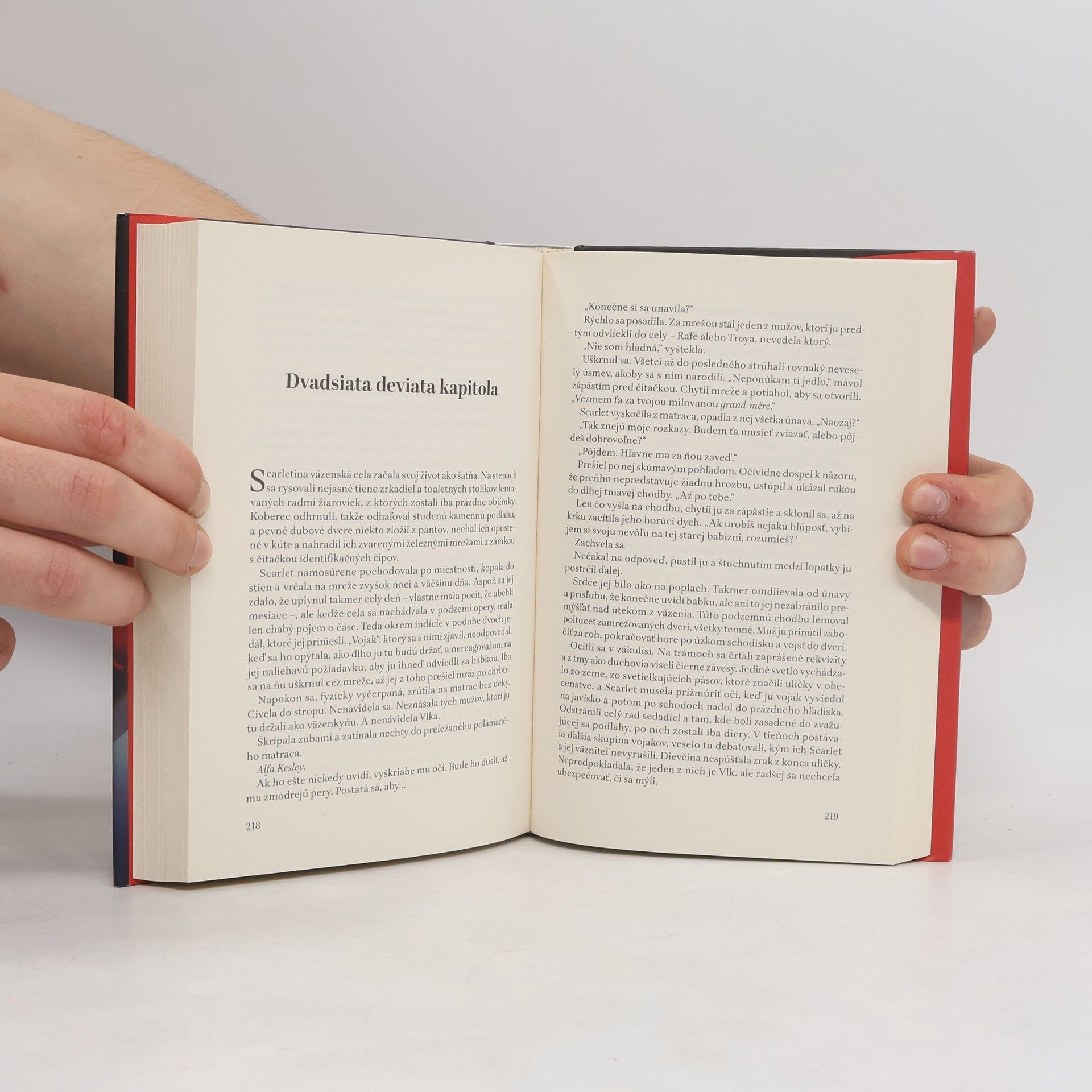 Kyborské dievča Cinder sa vracia v druhej napínavej časti úspešnej ságy Mesačné kroniky. Mladá opravárka sa snaží dostať z väzenia – hoci ak sa jej to podarí, stane sa najhľadanejšou utečenkou v celom Spoločenstve. Na druhom konci sveta sa stratila stará mama Scarlet Benoitovej. Keď sa Scarlet zoznámi s Vlkom, pouličny´m zápasníkom, ktory´ by mohol vedieť, kde sa nachádza jej babka, zdráha sa cudzincovi dôverovať, no čosi ju k nemu nevysvetliteľne priťahuje – rovnako ako jeho k nej. Na ceste za riešením jednej záhady sa Scarlet s Vlkom stretnú s ďalšou, keď natrafia na Cinder. Teraz sa všetci traja musia mať na pozore pred zlomyseľnou mesačnou kráľovnou Levanou. Tá totiž urobí čokoľvek, aby sa pekny´ princ Kai stal jej manželom, kráľom i väzňom.