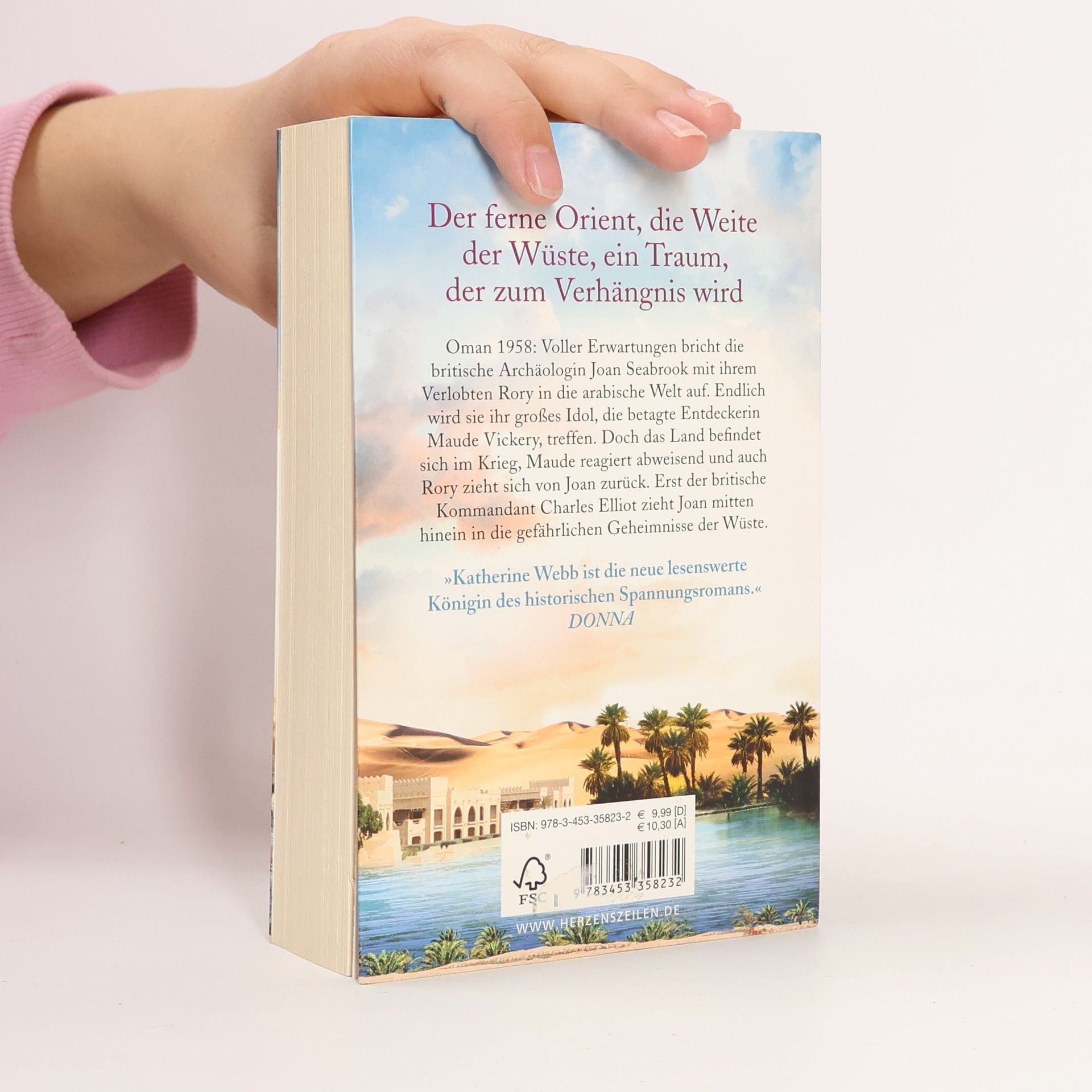 Oman 1958: Voller Erwartungen bricht die britische Archäologin Joan Seabrook mit ihrem Verlobten Rory in die arabische Welt auf. Endlich wird sie ihr großes Idol, die betagte Entdeckerin Maude Vickery, treffen. Doch die Ankunft ist ernüchternd: Das Land befindet sich im Krieg, Maude reagiert abweisend und auch Rory zieht sich zunehmend von Joan zurück. Erst der britische Kommandant Charles Elliot nimmt sich ihrer an und legt ihr die prächtige Welt des Orients zu Füßen. Bis sie ein folgenschweres Versprechen gibt. Ein Versprechen, das Joan mitten hineinzieht in die gefährlichen Geheimnisse der Wüste …