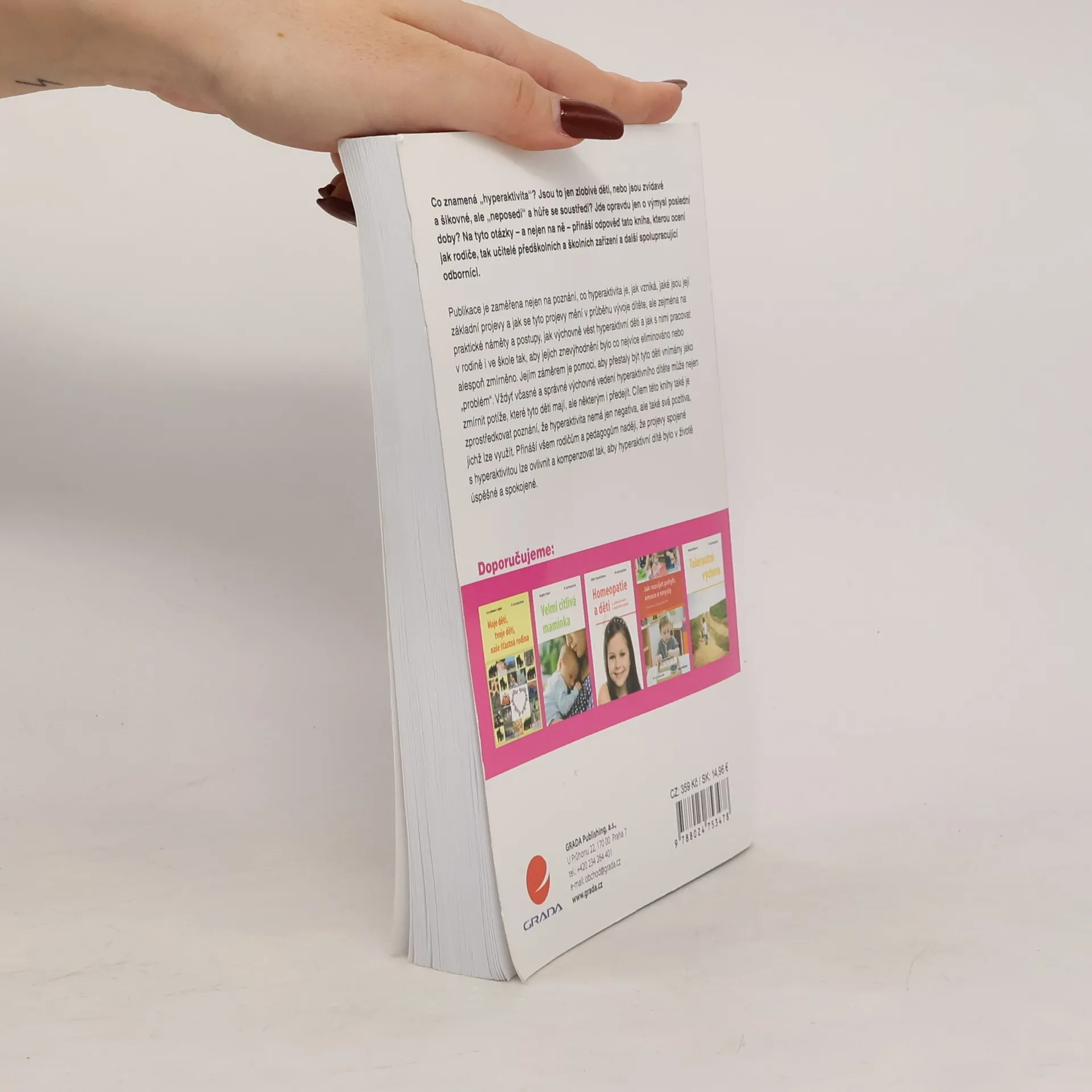 Publikace je zaměřena nejen na poznání, co hyperaktivita je, jak vzniká, jaké jsou její základní projevy a jak se tyto projevy mění v průběhu vývoje dítěte, ale zejména na praktické náměty a postupy, jak výchovně vést hyperaktivní děti a jak s nimi pracovat v rodině i ve škole tak, aby jejich znevýhodnění bylo co nejvíce eliminováno nebo alespoň zmírněno. Jejím záměrem je pomoci, aby přestaly být tyto děti vnímány jako „problém“. Vždyť včasné a správné výchovné vedení hyperaktivního dítěte může nejen zmírnit potíže, které tyto děti mají, ale některým i předejít. Cílem této knihy také je zprostředkovat poznání, že hyperaktivita nemá jen negativa, ale také svá pozitiva, jichž lze využít. Přináší všem rodičům a pedagogům naději, že projevy spojené s hyperaktivitou lze ovlivnit a kompenzovat tak, aby hyperaktivní dítě bylo v životě úspěšné a spokojené.