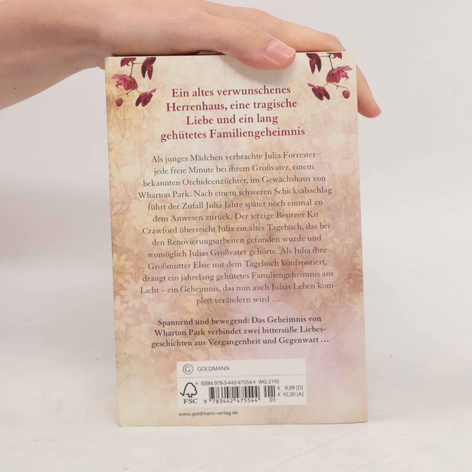 Jedes Haus hat sein Geheimnis. Und jede Liebe ihren Preis Als junges Mädchen verbrachte Julia Forrester jede freie Minute bei ihrem Großvater, einem bekannten Orchideenzüchter, im Gewächshaus von Wharton Park. Nach einem schweren Schicksalsschlag führt der Zufall Julia Jahre später noch einmal zu dem Anwesen zurück. Der jetzige Besitzer Kit Crawford überreicht ihr ein altes Tagebuch, das bei den Renovierungsarbeiten gefunden wurde und womöglich Julias Großvater gehörte. Als Julia ihre Großmutter Elsie mit dem Tagebuch konfrontiert, drängt ein jahrelang gehütetes Familiengeheimnis ans Licht, das auch Julias Leben komplett verändern wird …