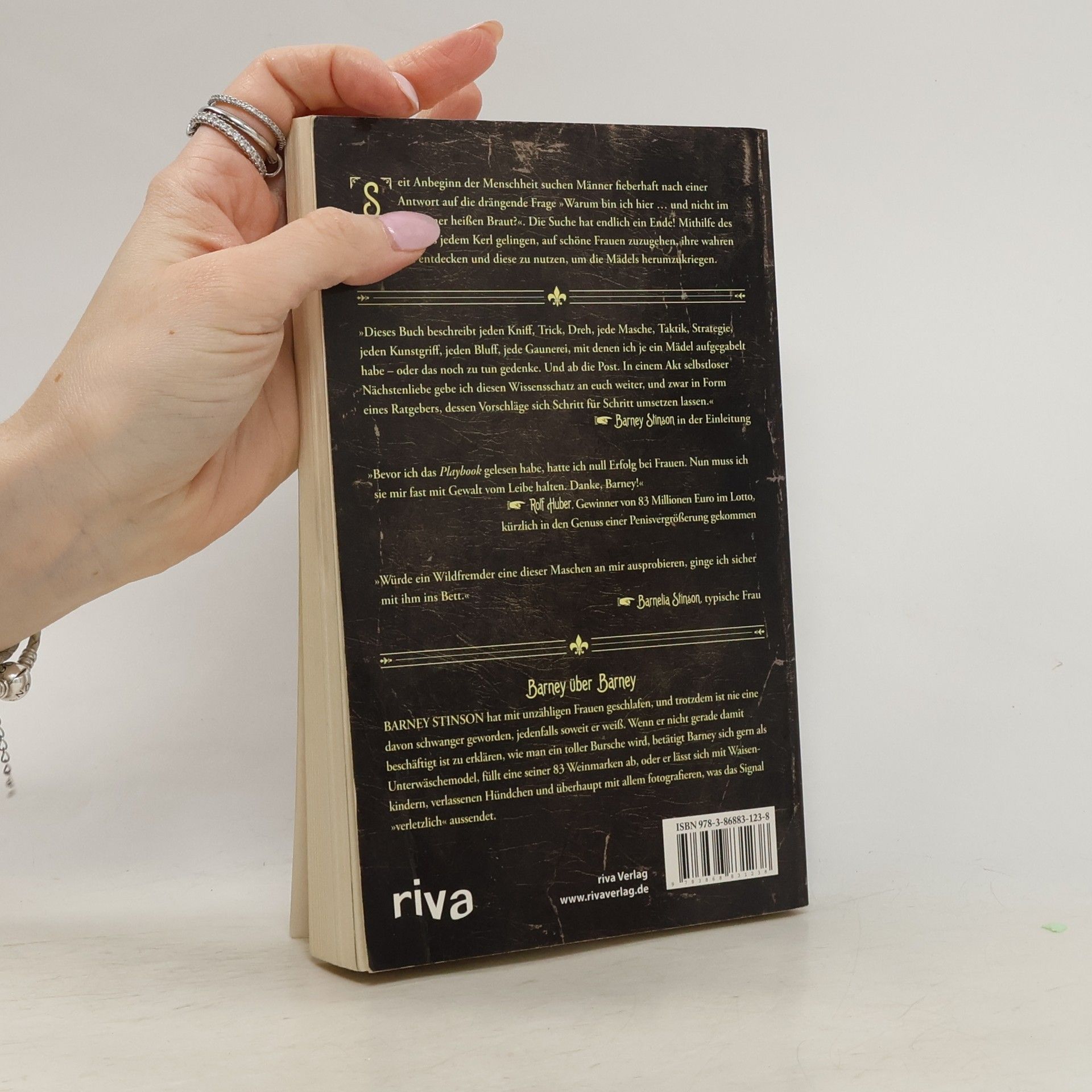 Barney Stinson, Held der erfolgreichen Fernsehserie „How I met your mother“, kriegt die Mädels mit kleinen Kniffen reihenweise rum. Nun verrät er in einem Buch alle seine Tricks, die garantiert zum Erfolg führen, auch bei Jungs, die im Umgang mit anderen Menschen – und vor allem anderen Frauen - wenig Geschick ha-ben. In „Das Playbook“ beschreibt Barney Stinson mehr als 75 Methoden, mit denen sich garantiert jede Frau anbaggern lässt. Hier erfährt der Leser alles über Barneys tolle Maschen: den SNASA-Trick („Nein, nicht für die NASA, ich arbeite für die Geheimabteilung – die Secret NASA.“) oder den Cheap Trick-Trick („Yo, ich bin der Bassist von Cheap Trick“, denn Frauen sind begeistert, wenn ein Mann in einer Band spielt, egal in was für einer). Und das Schöne an seinen Strategien ist, dass die meisten dieser Schachzüge keine Erfahrung und auch keine Vorbereitung erfordern. Jeder kann sofort loslegen. „Das Playbook“ ist das ultimative Lebens-hilfebuch für alle Männer, die auf der Suche nach Frauen sind. Oder frei nach Barney Stinson: „Also, werft euch in Schale, macht euch bereit und lernt . . . wie man der Größte wird. “