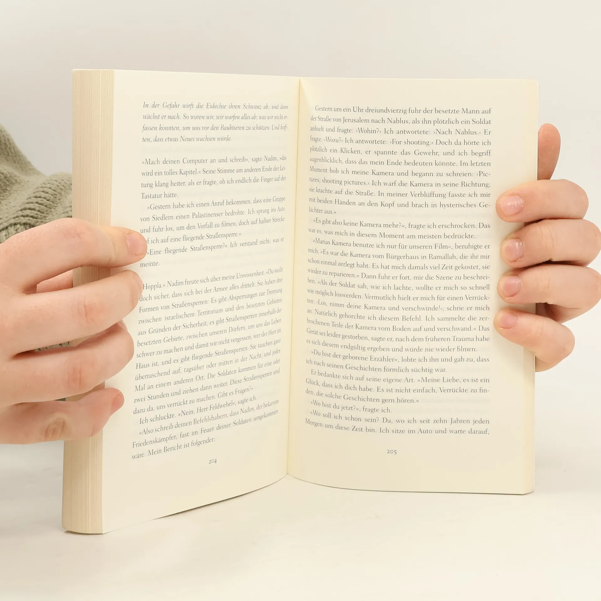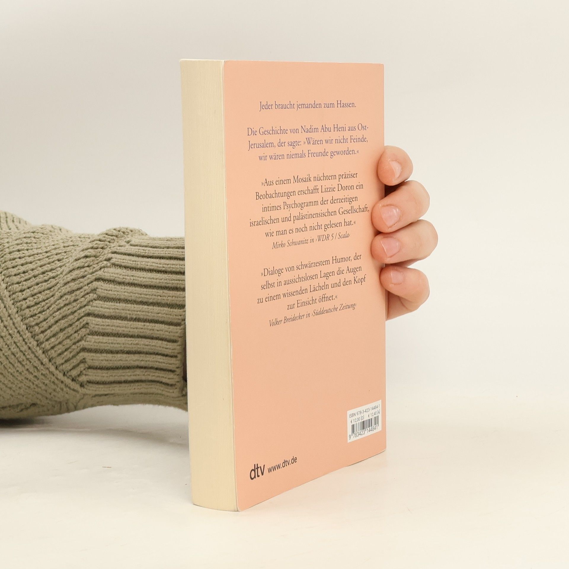 Hass ist ein Gefühl, aber Frieden ist eine Entscheidung Zuerst: Ein Hotel in Rom. Eine israelischpalästinensische Konferenz: Aber ist der Mann, der mit Lizzie auf dem Podium sitzt, nicht vielleicht doch ein arabischer Selbstmordattentäter mit Sprengstoffgürtel? Nein, Nadim pflegt nur seine Reiseunterlagen mit schwarzem Klebeband am Hosenbund zu befestigen, und dafür gibt es Gründe ... Dann: High Heels in Ost-Jerusalem? Ein Palästinenser im vornehmen Tel Aviver Apartmentgebäude? Von Anfang an ist es eine wechselvolle Freundschaft, die sich zwischen der israelischen Schriftstellerin Lizzie Doron und dem arabisch-palästinensischen Journalisten Nadim entwickelt, begleitet von Vorurteilen und Unverständnis. Es gibt Grenzen der Verständigung. Lizzie hat den Holocaust im Gepäck, Nadim die Nakba – die große Katastrophe –, wie die Palästinenser die Folgen des 48er-Krieges nennen. Sie begreifen, dass sie dieselbe Irrenanstalt bewohnen, nur in verschiedenen geschlossenen Abteilungen. Nadims Frau ist aus Gaza, hat aber keinen Ort, an dem sie bleiben kann ...