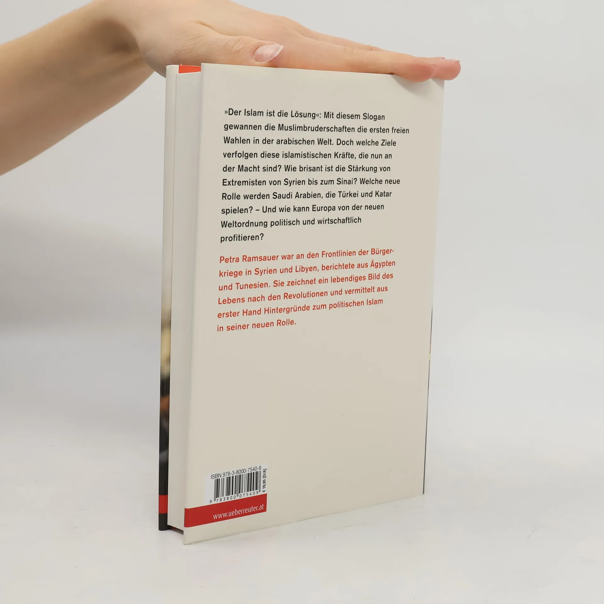 „Der Islam ist die Lösung“: Mit diesem Slogan gewannen die Muslimbruderschaften die ersten freien Wahlen in der arabischen Welt. Doch welche Ziele verfolgen diese islamistischen Kräfte, die nun an der Macht sind? Wie brisant ist die Stärkung von Extremisten von Syrien bis zum Sinai? Welche neue Rolle werden Saudi Arabien, die Türkei und Katar spielen? – Und wie kann Europa von der neuen Weltordnung politisch und wirtschaftlich profitieren? Petra Ramsauer war an den Frontlinien der Bürgerkriege in Syrien und Libyen, berichtete aus Ägypten und Tunesien. Sie zeichnet ein lebendiges Bild des Lebens nach den Revolutionen und vermittelt aus erster Hand Hintergründe zum politischen Islam in seiner neuen Rolle.
