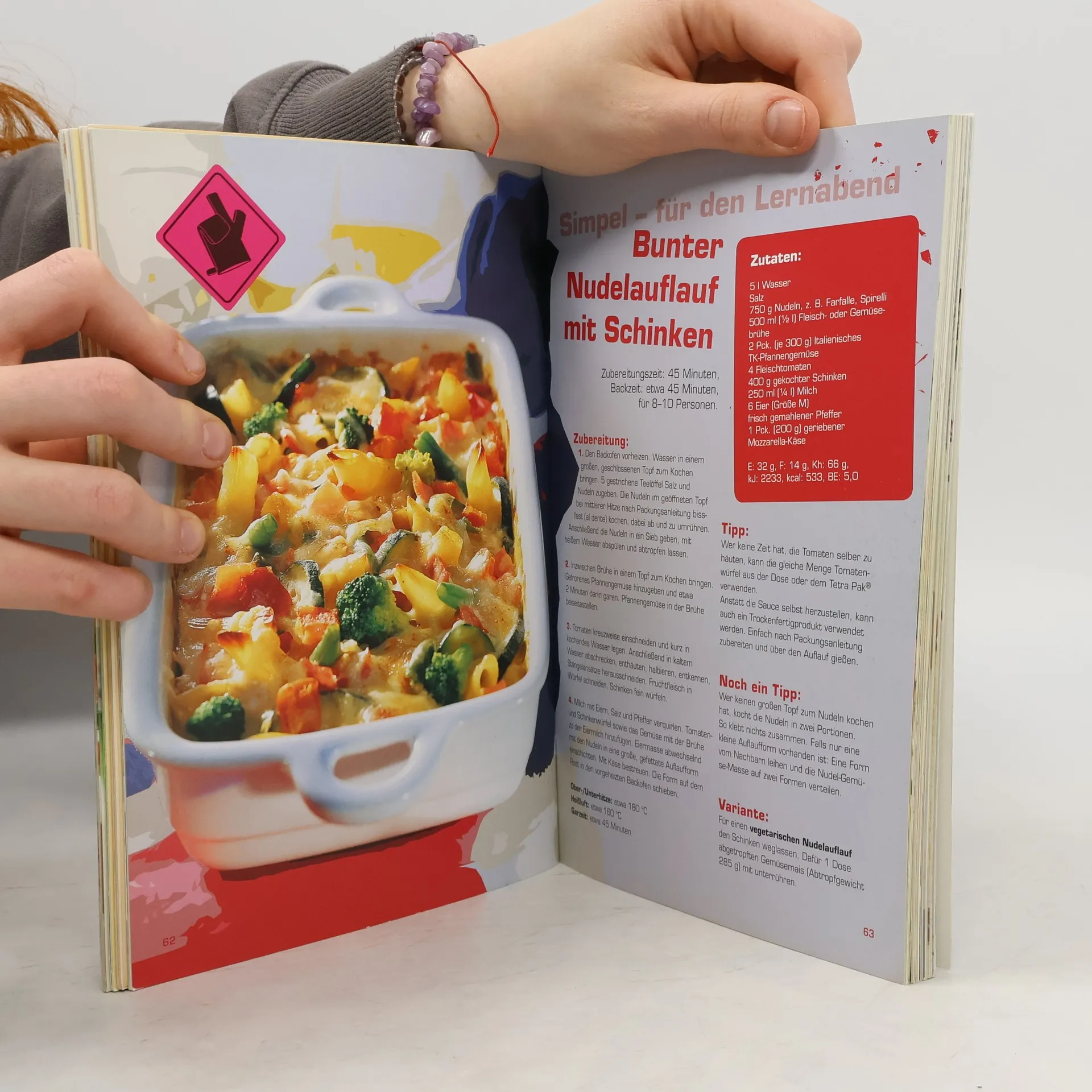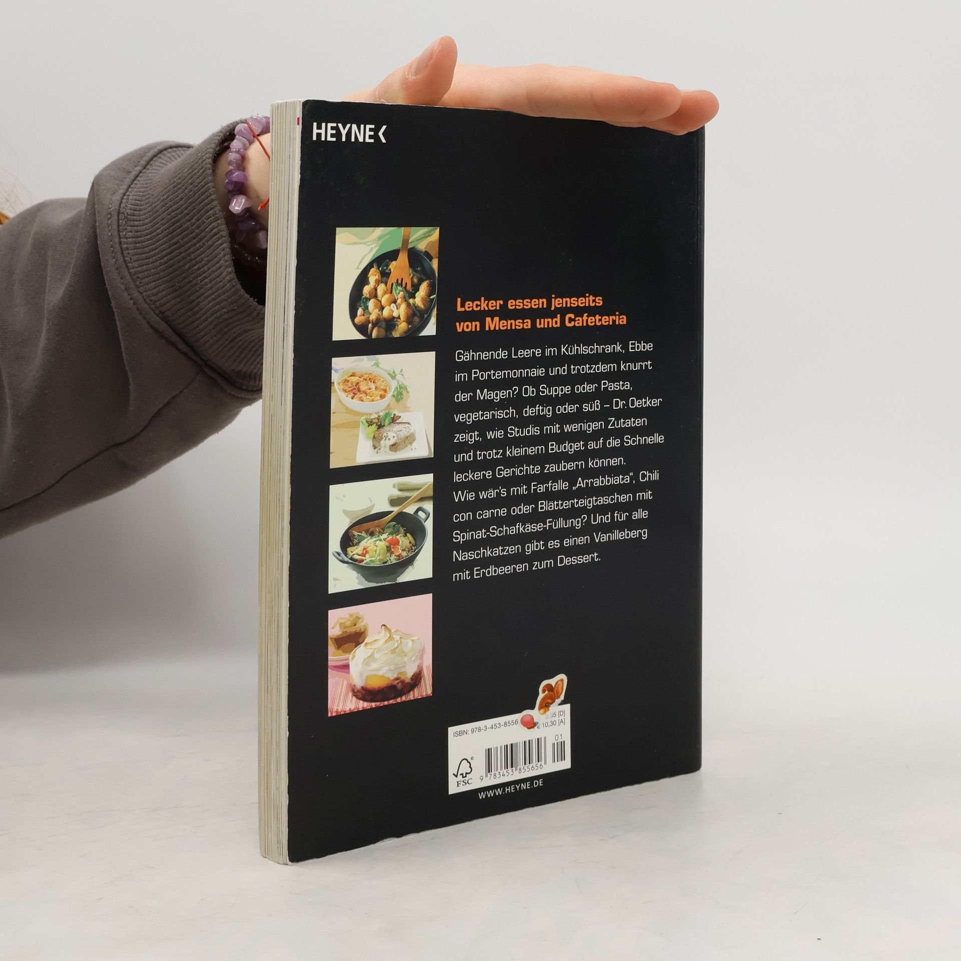 Die besten Rezepte jenseits von Mensa und Cafeteria Gähnende Leere im Kühlschrank, Ebbe im Portemonnaie und trotzdem knurrt der Magen? Ob Suppe oder Pasta, vegetarisch, deftig oder süß – Dr. Oetker zeigt, wie Studis mit wenigen Zutaten und trotz kleinem Budget auf die Schnelle leckere Gerichte zaubern können. Wie wär’s mit Penne all’arrabiata, Chili con carne oder Blätterteigtaschen mit Spinat-Schafskäse-Füllung? Und für alle Naschkatzen gibt es Schokoladenauflauf mit Aprikosen zum Dessert.