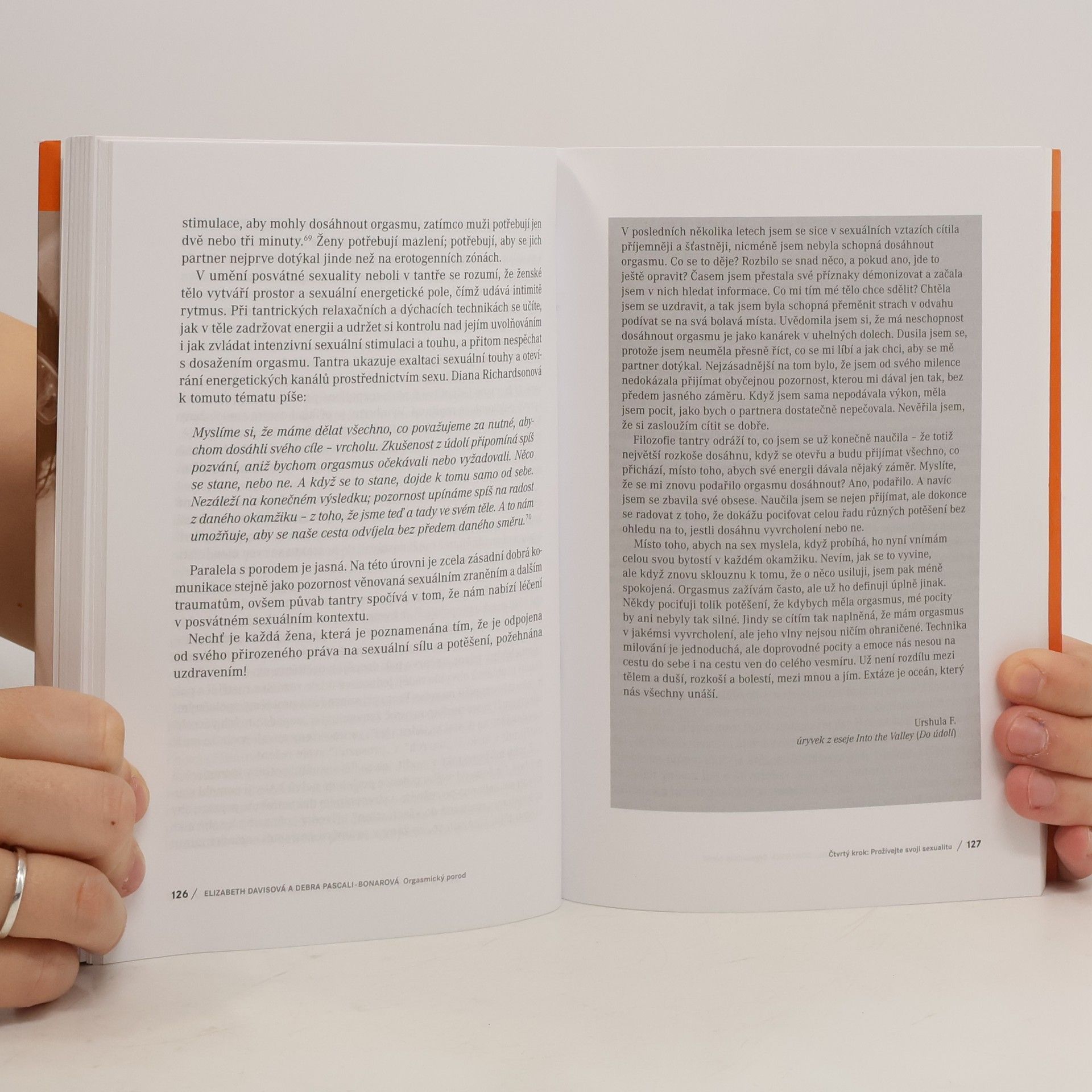 Kniha, která vám může otevřít oči a úplně změnit přístup k rození a možná i k vlastnímu životu. Odbornice na slovo vzaté, porodní asistentka a autorka učebnice pro porodní asistentky Elizabeth Davisová a zkušená dula a lektorka Debra Pascali-Bonarová, ukazují, že porod je možné prožít jako příjemnou až slastnou a extatickou, zásadně posilující událost, která ženě dodá sílu a odhodlání nejen pro následující roky mateřství. Orgasmický porod je přehledným průvodcem těhotenstvím a porodem. Přináší podrobný návod, jak se na porod, který je součástí sexuálního života ženy, připravit. Klade důraz na informovanost, zdravou životosprávu, sexualitu, odbourání stresu a vyrovnání se s traumaty. Kniha ženám (i jejich partnerům) dodá sebevědomí, potřebné informace podložené vědeckými výzkumy i životními zkušenostmi autorek a mnoha rodiček. Čtenářky podpoří, aby nejen své porody, ale i svůj život vzaly do svých rukou. Teoretickou část doprovázejí inspirativní porodní příběhy.