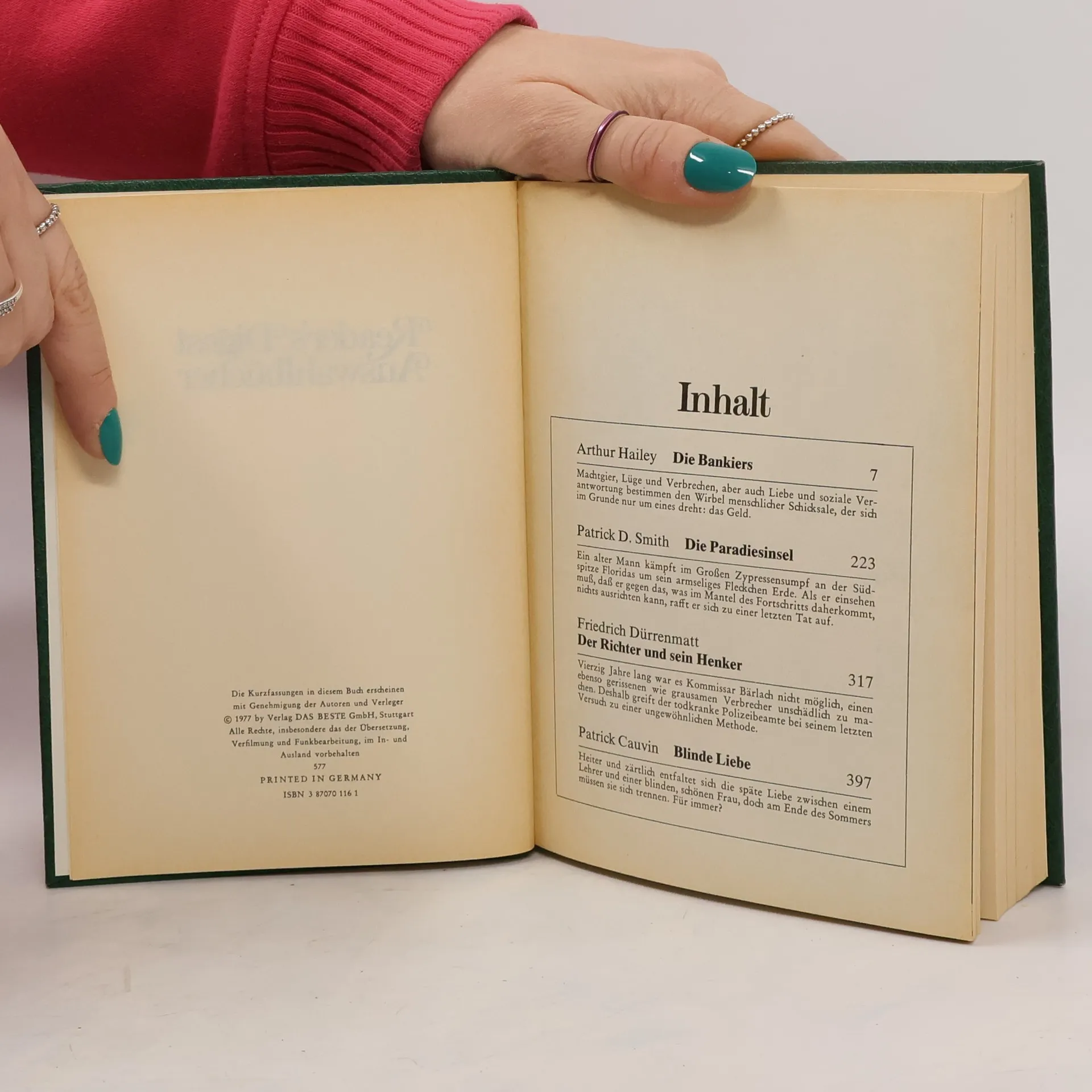 Die Bankiers/Die Paradiesinsel/Der Richter und sein Henker/Blinde Liebe - bk502; Verlag "Das Beste"; Arthur Hailey/Patrick D. Smith/Friedrich Dürrenmatt/Patrick Cauvin; Paperback; 1977