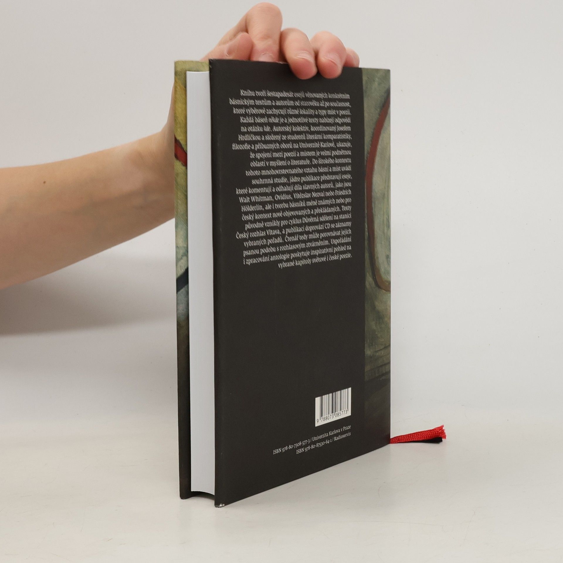 Knihu tvoří šestapadesát esejů věnovaných konkrétním básnickým textům a autorům od starověku až po současnost, které výběrově zachycují různé lokality a typy míst v poezii. Každá báseň někde je a jednotlivé texty nabízejí odpovědi na otázku kde. Autorský kolektiv, koordinovaný Josefem Hrdličkou a složený ze studentů literární komparatistiky, filozofie a příbuzných oborů na Univerzitě Karlově, ukazuje, že spojení mezi poezií a místem je velmi podnětnou oblastí v myšlení o literatuře. Do širokého kontextu tohoto mnohovrstevnatého vztahu básní a míst uvádí souhrnná studie, jádro publikace představují eseje, které komentují a odhalují díla slavných autorů, jako jsou Walt Whitman, Ovidius, Vítězslav Nezval nebo Friedrich Hölderlin, ale i tvorbu básníků méně známých nebo pro český kontext nově objevovaných a překládaných. Čtenář tedy může porovnávat jejich psanou podobu s rozhlasovým ztvárněním. Uspořádání i zpracování antologie poskytuje inspirativní pohled na vybrané kapitoly světové i české poezie.