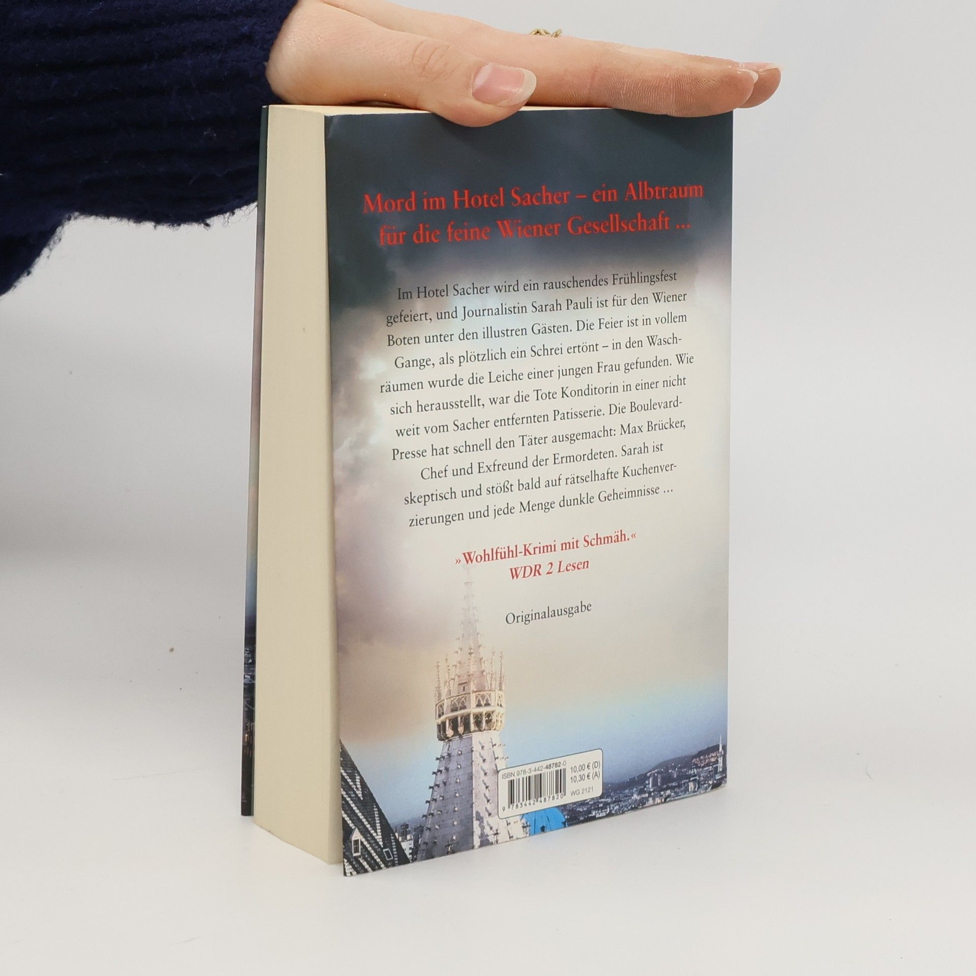 Mord im Hotel Sacher – ein Albtraum für die feine Wiener Gesellschaft ... Im Hotel Sacher wird ein rauschendes Frühlingsfest gefeiert, und Journalistin Sarah Pauli ist für den Wiener Boten unter den illustren Gästen. Die Feier ist in vollem Gange, als plötzlich ein Schrei ertönt – in den Waschräumen wurde die Leiche einer jungen Frau gefunden. Wie sich herausstellt, war das Opfer Konditorin in einer nicht weit vom Sacher entfernten Patisserie. Die Boulevard-Presse hat schnell den Täter ausgemacht: Konditor Max Brücker, Chef und Exfreund der Toten. Sarah ist skeptisch und stößt bald auf rätselhafte Kuchenverzierungen und jede Menge dunkle Geheimnisse …