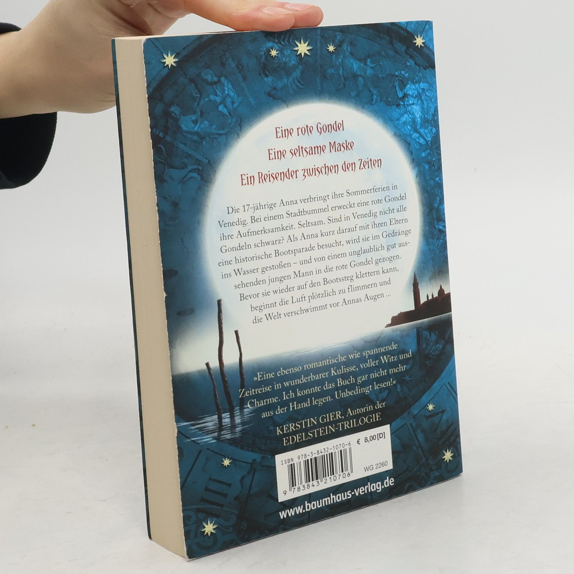 Die 17-jährige Anna verbringt ihre Sommerferien in Venedig. Bei einem Stadtbummel erweckt eine rote Gondel ihre Aufmerksamkeit. Seltsam. Sind in Venedig nicht alle Gondeln schwarz? Als Anna kurz darauf mit ihren Eltern eine historische Bootsparade besucht, wird sie im Gedränge ins Wasser gestoßen - und von einem unglaublich gut aussehenden jungen Mann in die rote Gondel gezogen. Bevor sie wieder auf den Bootssteg klettern kann, beginnt die Luft plötzlich zu flimmern und die Welt verschwimmt vor Annas Augen ...