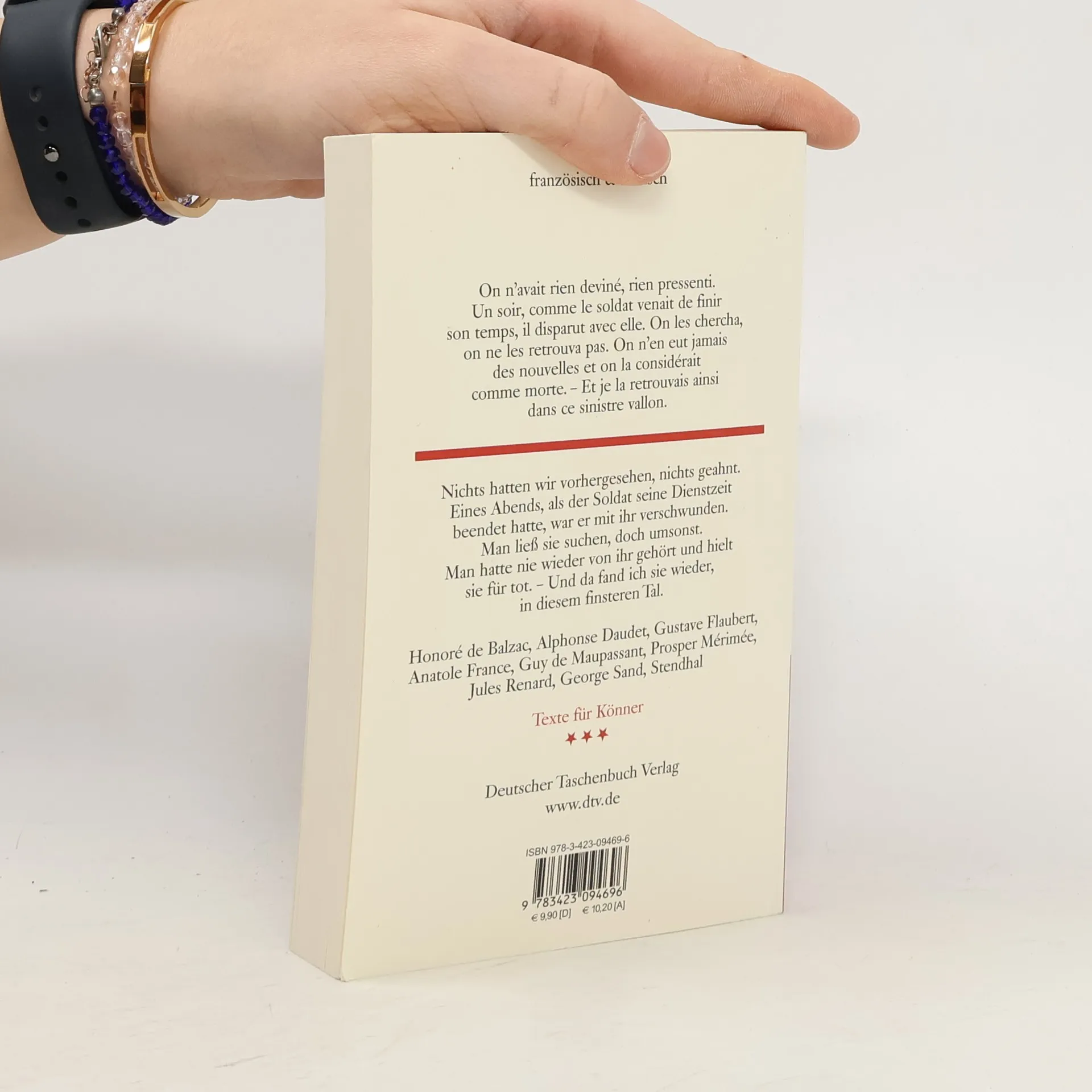 Erzählungen französischer Klassiker - zweisprachig Liebe, Leidenschaft, Ehre, Glück, Trauer, Schmerz – die ewigen Themen des Lebens sind auch die der Literatur, hier in Erzählungen französischer Autoren des 19. Jahrhunderts gegossen,– inhaltlich wie stilistisch ein Lesegenuss! Inhalt: Stendhal: Le coffre et le revenant Honoré de Balzac: Une passion dans le désert George Sand: La Fée aux gros yeux Prosper Mérimée: La chambre bleue Gustave Flaubert: Matteo Falcone Alphonse Daudet: Maison à vendre Anatole France: Le Jongleur de Notre-Dame Guy de Maupassant: Le bonheur Jules Renard: La demande dtv zweisprachig – Die Vielfalt der Sprachen auf einen Blick Die Reihe umfasst drei Sprach-Niveaus – Einsteiger, Fortgeschrittene und Könner – und mittlerweile über 130 Titel in vielen Sprachen. Landeskunde, Kulturgeschichte und Redewendungen, zeitgenössische und klassische Texte in unterschiedlichen Formen und Genres – von der Kurzgeschichte bis zum Krimi – für jeden Lesegeschmack ist etwas dabei. Einzigartig ist die konsequente Zeilengleichheit zwischen Originaltext und Übersetzung, damit man vom ersten bis zum letzten Wort in zwei Sprachwelten zuhause ist.