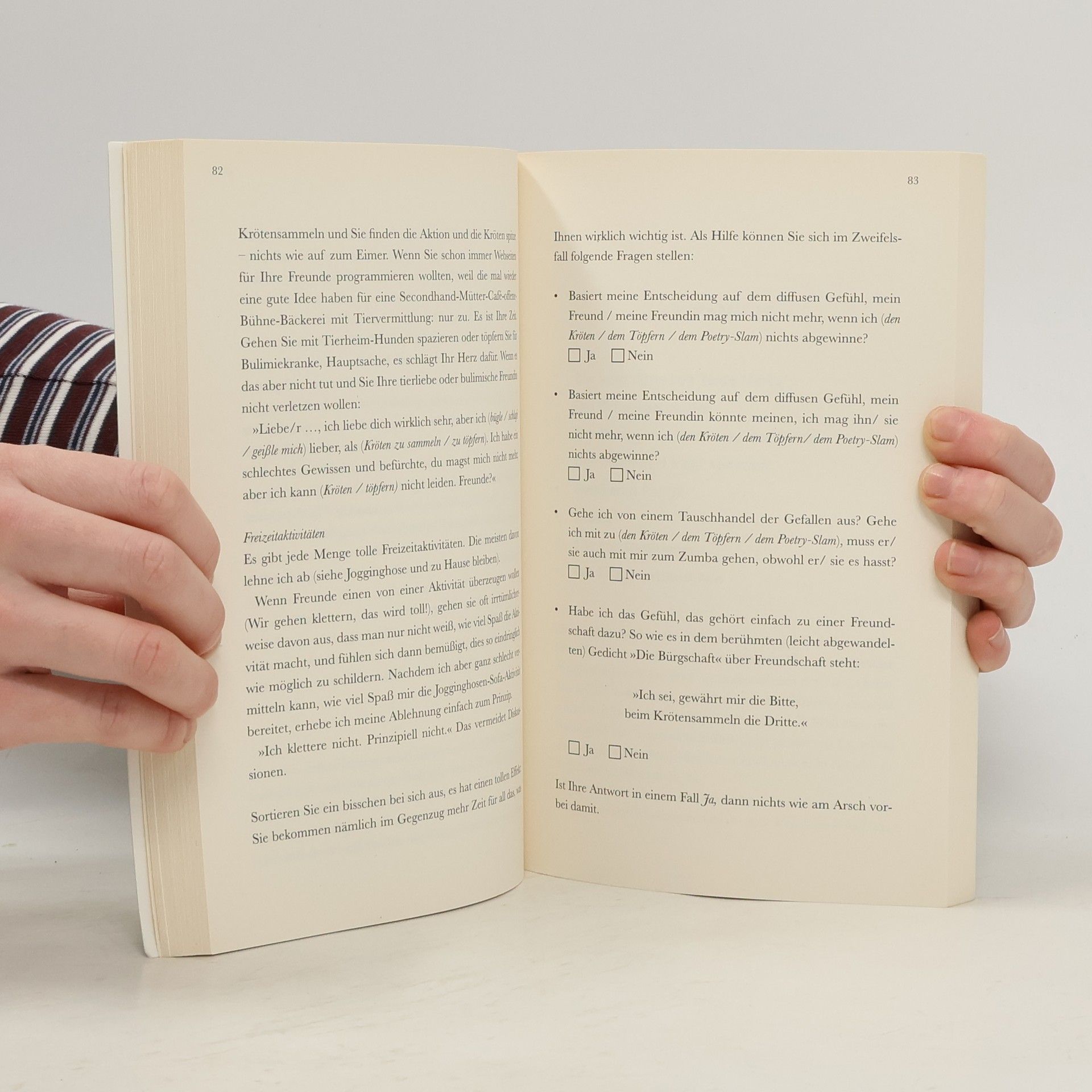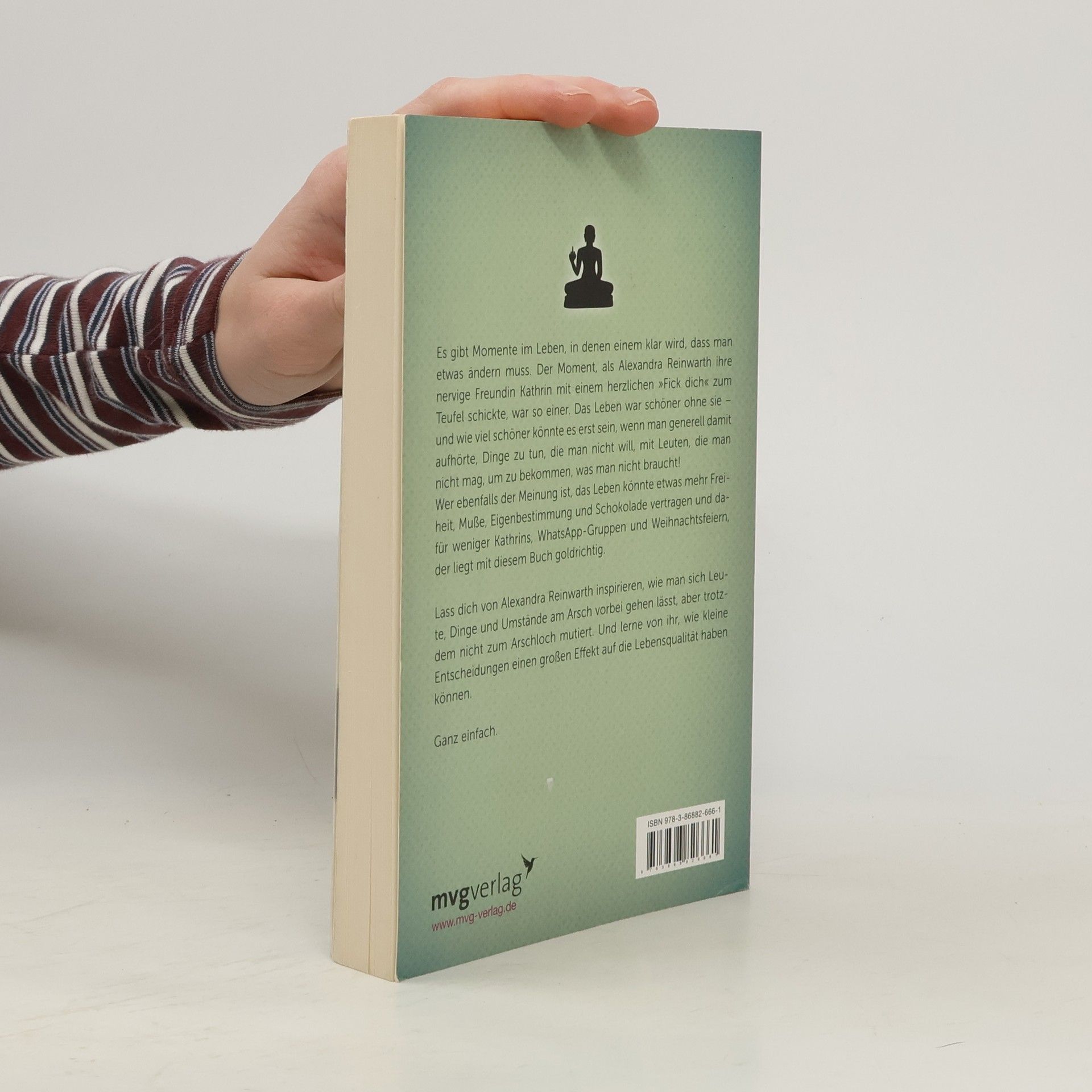 Es gibt Momente im Leben, in denen einem klar wird, dass man etwas ändern muss. Der Moment, als Alexandra Reinwarth ihre nervige Freundin Kathrin mit einem herzlichen „Fick Dich“ zum Teufel schickte, war so einer. Das Leben war schöner ohne sie – und wie viel schöner könnte es erst sein, wenn man generell damit aufhörte, Dinge zu tun, die man nicht will, mit Leuten die man nicht mag, um zu bekommen, was man nicht braucht! Wer noch der Meinung ist, das Leben könnte etwas mehr Freiheit, Muße, Eigenbestimmung und Schokolade vertragen und dafür weniger Kathrins, WhatsApp-Gruppen und Weihnachtsfeiern, der ist hier goldrichtig. Lassen Sie sich von Alexandra Reinwarth inspirieren, wie man sich Leute, Dinge und Umstände am Arsch vorbei gehen lässt, aber trotzdem nicht zum Arschloch mutiert. Und lernen Sie von ihr, wie kleine Entscheidungen einen großen Effekt auf die Lebensqualität haben können. Ganz einfach. Mehr Informationen und weitere tolle Produkte zu Am Arsch vorbei gibt es unter: www. am-arsch-vorbei. de