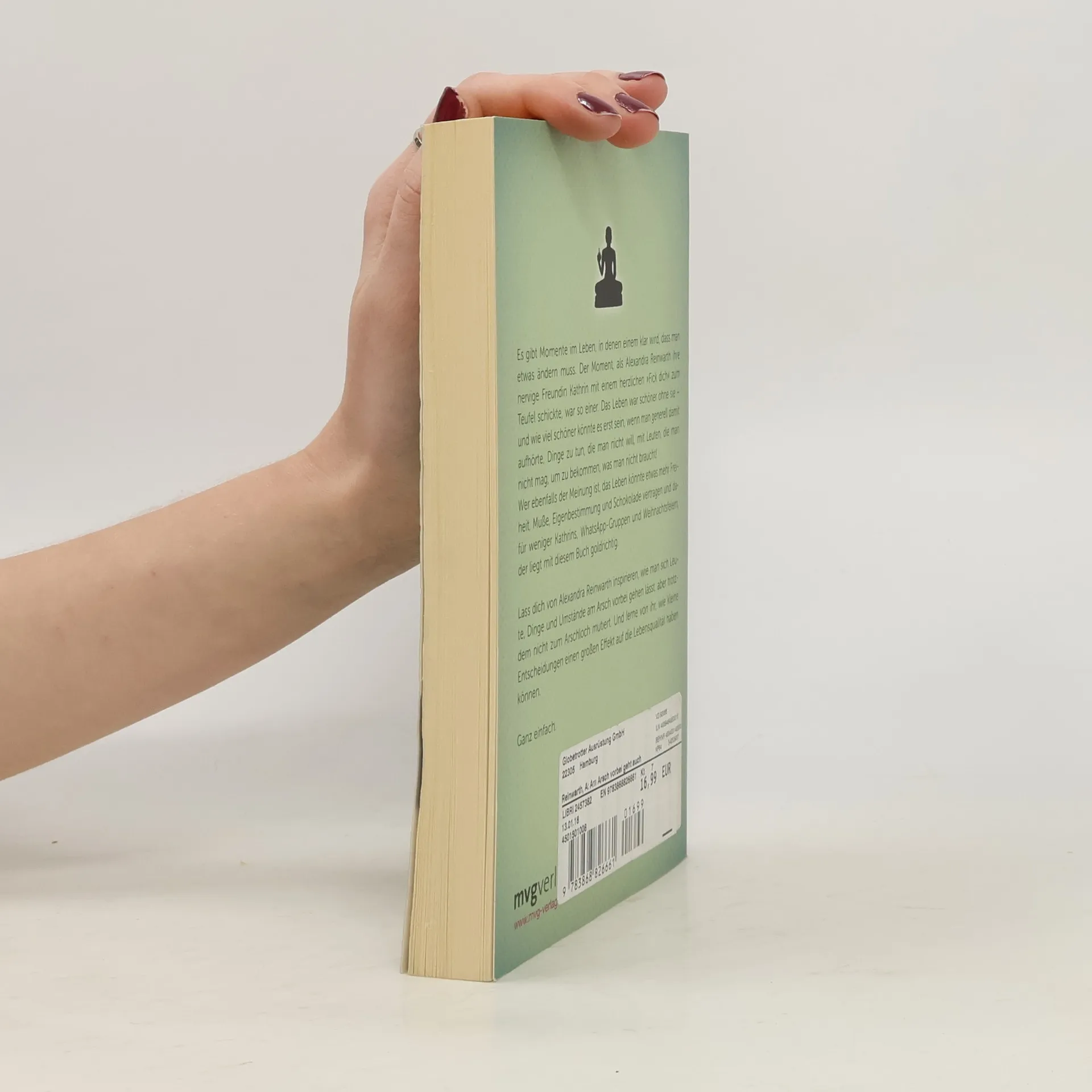 Es gibt Momente im Leben, in denen einem klar wird, dass man etwas ändern muss. Der Moment, als Alexandra Reinwarth ihre nervige Freundin Kathrin mit einem herzlichen „Fick Dich“ zum Teufel schickte, war so einer. Das Leben war schöner ohne sie – und wie viel schöner könnte es erst sein, wenn man generell damit aufhörte, Dinge zu tun, die man nicht will, mit Leuten die man nicht mag, um zu bekommen, was man nicht braucht! Wer noch der Meinung ist, das Leben könnte etwas mehr Freiheit, Muße, Eigenbestimmung und Schokolade vertragen und dafür weniger Kathrins, WhatsApp-Gruppen und Weihnachtsfeiern, der ist hier goldrichtig. Lassen Sie sich von Alexandra Reinwarth inspirieren, wie man sich Leute, Dinge und Umstände am Arsch vorbei gehen lässt, aber trotzdem nicht zum Arschloch mutiert. Und lernen Sie von ihr, wie kleine Entscheidungen einen großen Effekt auf die Lebensqualität haben können. Ganz einfach. Mehr Informationen und weitere tolle Produkte zu Am Arsch vorbei gibt es unter: www. am-arsch-vorbei. de
