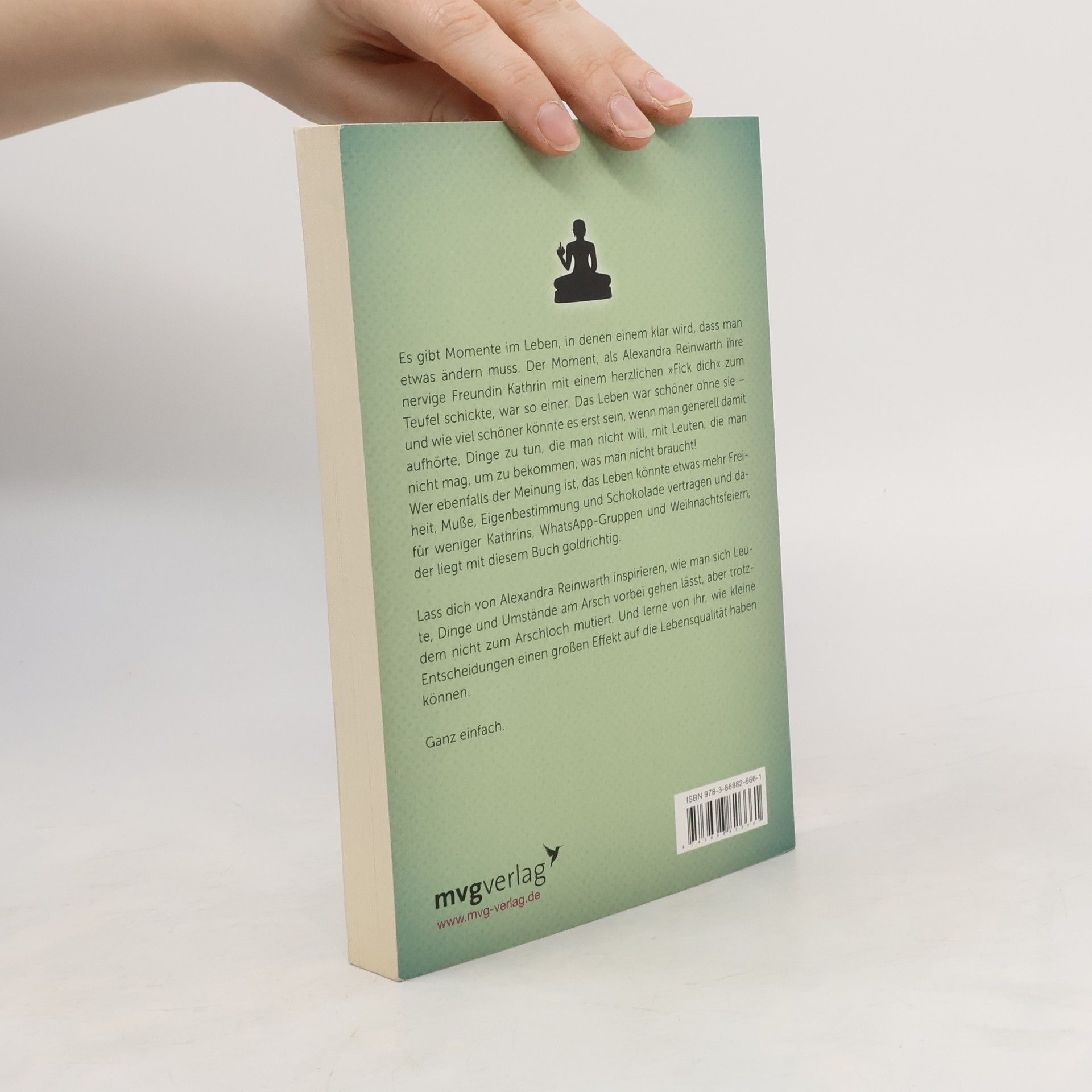 Es gibt Momente im Leben, in denen einem klar wird, dass man etwas ändern muss. Der Moment, als Alexandra Reinwarth ihre nervige Freundin Kathrin mit einem herzlichen „Fick Dich“ zum Teufel schickte, war so einer. Das Leben war schöner ohne sie – und wie viel schöner könnte es erst sein, wenn man generell damit aufhörte, Dinge zu tun, die man nicht will, mit Leuten die man nicht mag, um zu bekommen, was man nicht braucht! Wer noch der Meinung ist, das Leben könnte etwas mehr Freiheit, Muße, Eigenbestimmung und Schokolade vertragen und dafür weniger Kathrins, WhatsApp-Gruppen und Weihnachtsfeiern, der ist hier goldrichtig. Lassen Sie sich von Alexandra Reinwarth inspirieren, wie man sich Leute, Dinge und Umstände am Arsch vorbei gehen lässt, aber trotzdem nicht zum Arschloch mutiert. Und lernen Sie von ihr, wie kleine Entscheidungen einen großen Effekt auf die Lebensqualität haben können. Ganz einfach. Mehr Informationen und weitere tolle Produkte zu Am Arsch vorbei gibt es unter: www. am-arsch-vorbei. de