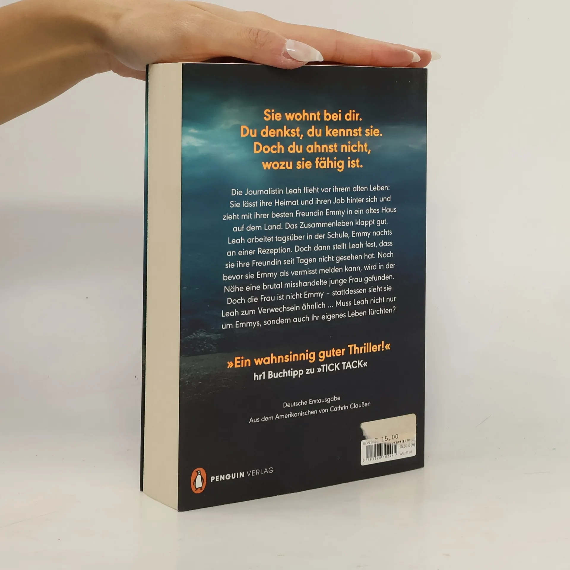Sie wohnt bei dir. Du denkst, du kennst sie. Doch du weißt nicht, wozu sie fähig ist ... Die Journalistin Leah flieht vor ihrem alten Leben: Sie lässt ihre Heimat und ihren Job hinter sich und zieht mit ihrer besten Freundin Emmy in ein altes Haus auf dem Land. Das Zusammenleben klappt gut. Leah arbeitet tagsüber in der Schule, Emmy nachts an einer Rezeption. Doch dann stellt Leah eines Nachts fest, dass sie ihre Freundin seit Tagen nicht gesehen hat. Noch bevor sie Emmy als vermisst melden kann, wird in der Nähe eine brutal misshandelte junge Frau gefunden. Doch die Frau ist nicht Emmy – stattdessen sieht sie Leah zum Verwechseln ähnlich … Muss Leah nicht nur um Emmys, sondern auch ihr eigenes Leben fürchten?