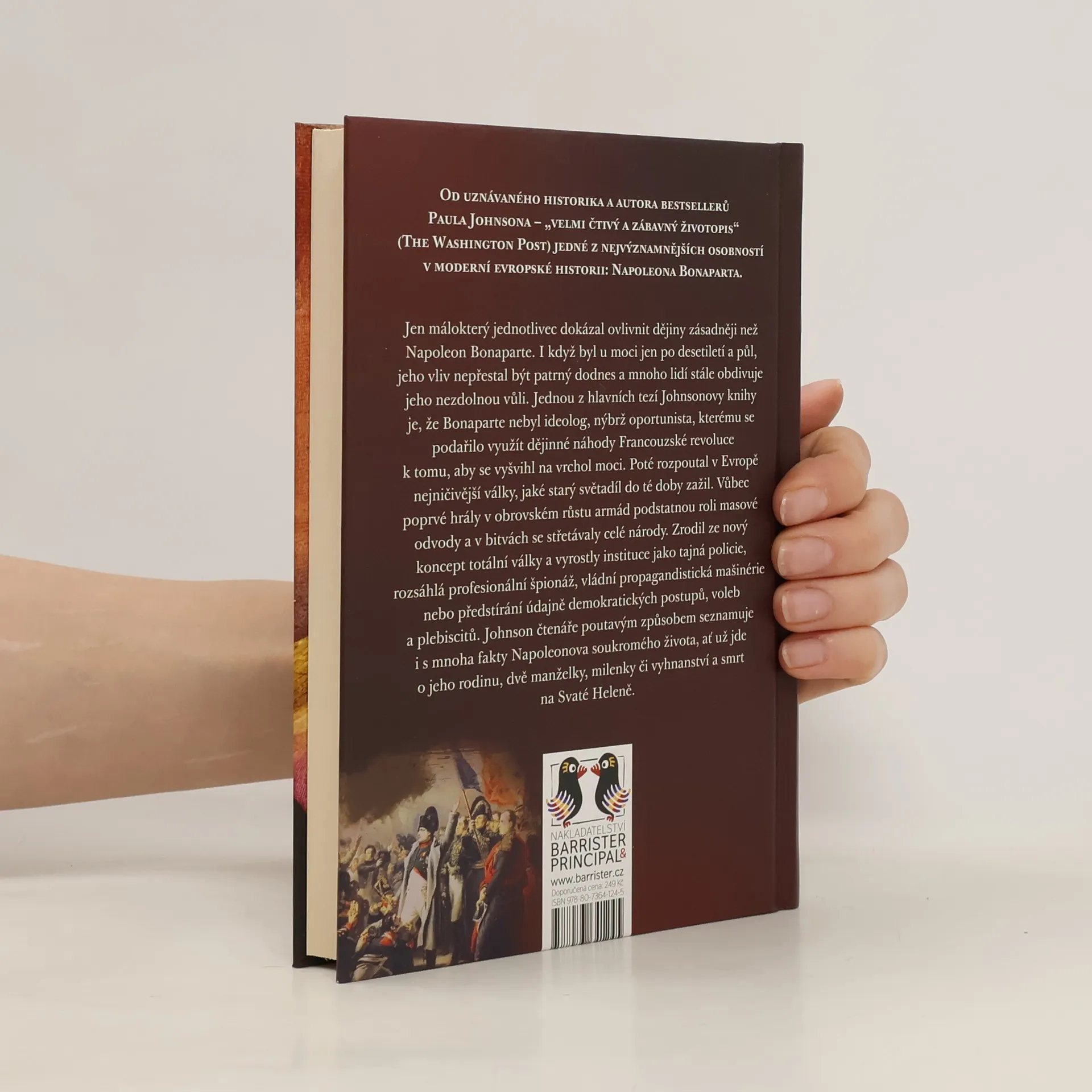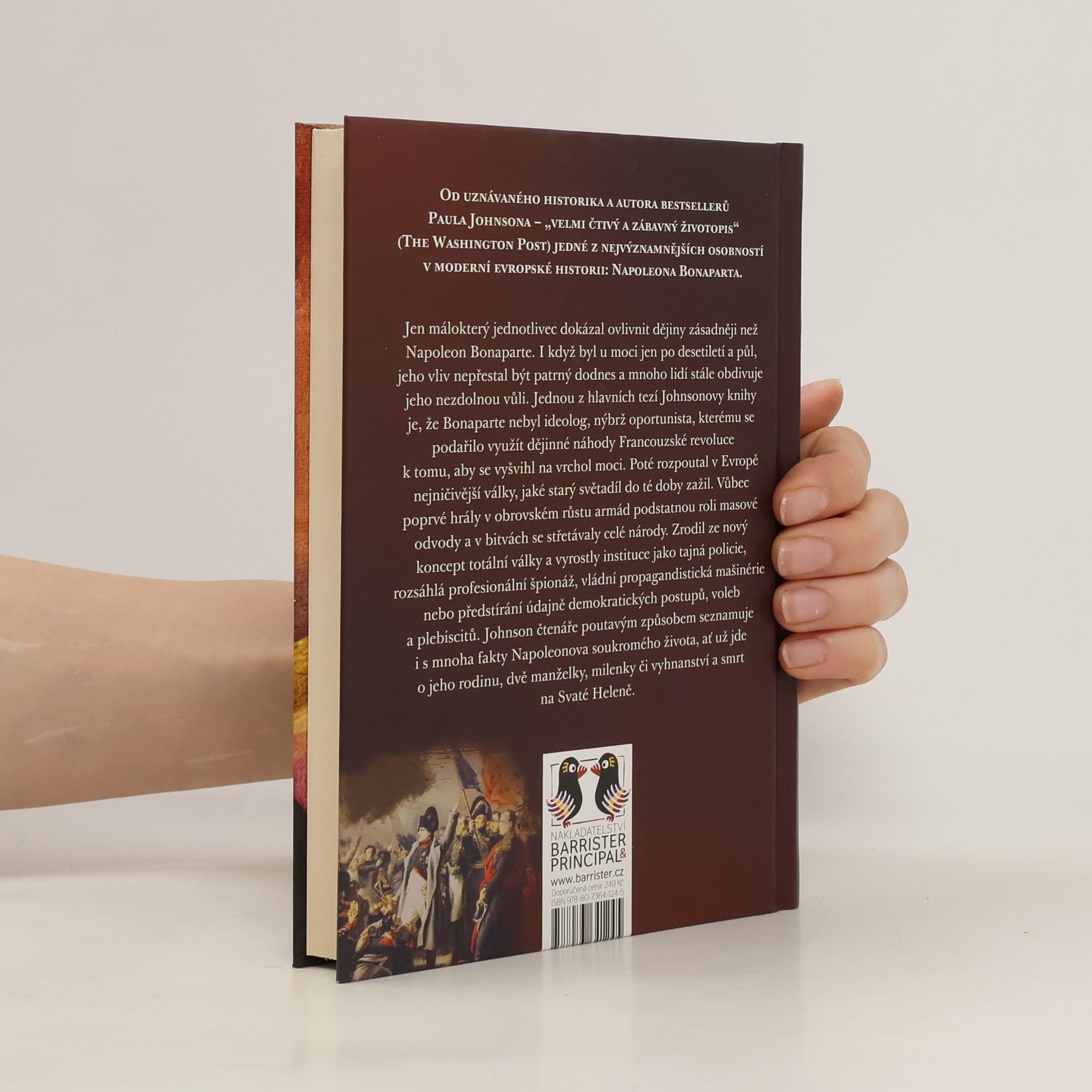 Jen málokterý jednotlivec dokázal ovlivnit dějiny zásadněji než Napoleon Bonaparte. I když byl u moci jen po desetiletí a půl, jeho vliv nepřestal být patrný dodnes a mnoho lidí stále obdivuje jeho nezdolnou vůli. Jednou z hlavních tezí Johnsonovy knihy je, že Bonaparte nebyl ideolog, nýbrž oportunista, kterému se podařilo využít dějinné náhody Francouzské revoluce k tomu, aby se vyšvihl na vrchol moci. Poté rozpoutal v Evropě nejničivější války, jaké starý světadíl do té doby zažil. Vůbec poprvé hrály v obrovském růstu armád podstatnou roli masové odvody a v bitvách se střetávaly celé národy. Zrodil ze nový koncept totální války a vyrostly instituce jako tajná policie, rozsáhlá profesionální špionáž, vládní propagandistická mašinérie nebo předstírání údajně demokratických postupů, voleb a plebiscitů. Johnson čtenáře poutavým způsobem seznamuje i s mnoha fakty Napoleonova soukromého života, ať už jde o jeho rodinu, dvě manželky, milenky či vyhnanství a smrt na Svaté Heleně.