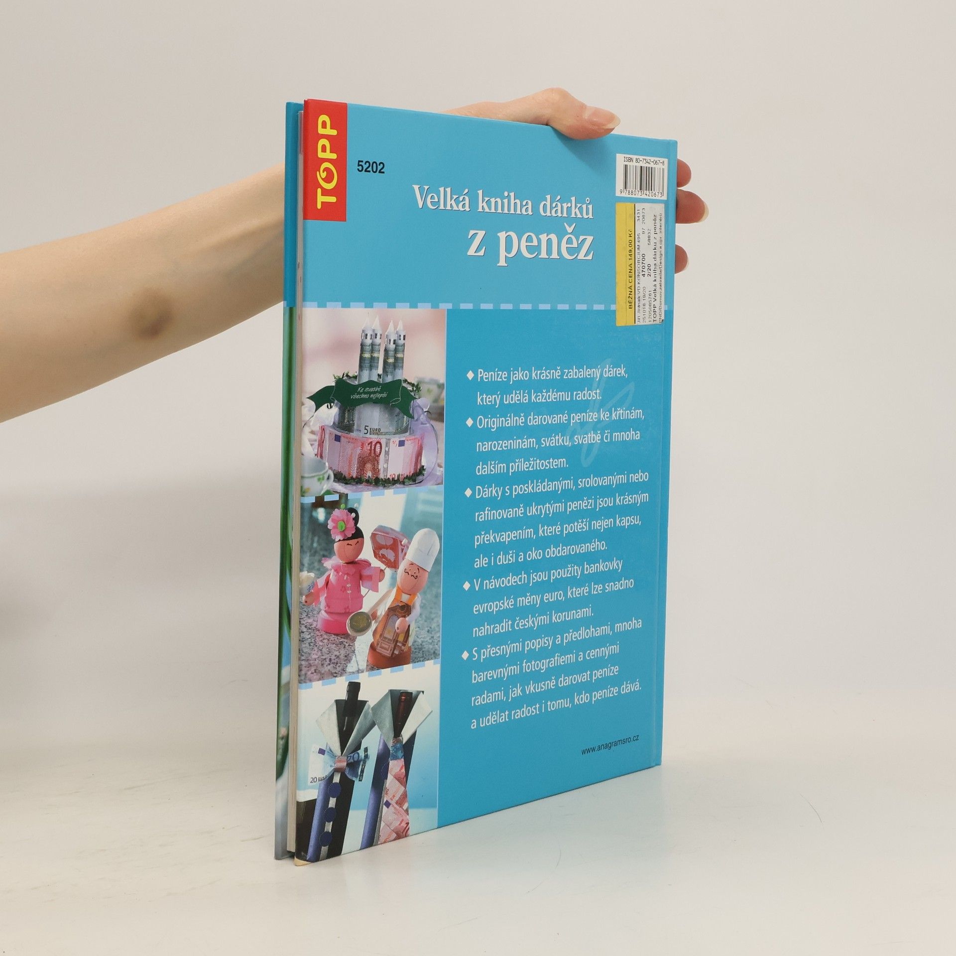 Peníze jako krásně zabalený dárek, který udělá každému radost. Originálně darované peníze ke křtinám, narozeninám, svátku, svatbě či mnoha dalším příležitostem. Dárky s poskládanými, srolovanými nebo rafinovaně ukrytými penězmi jsou krásným překvapením, které potěší nejen kapsu, ale i duši a oko obdarovaného. V návodech jsou použity bankovky evropské měny euro, které lze snadno nahradit českými korunami. (nápady pro každou příležitost)