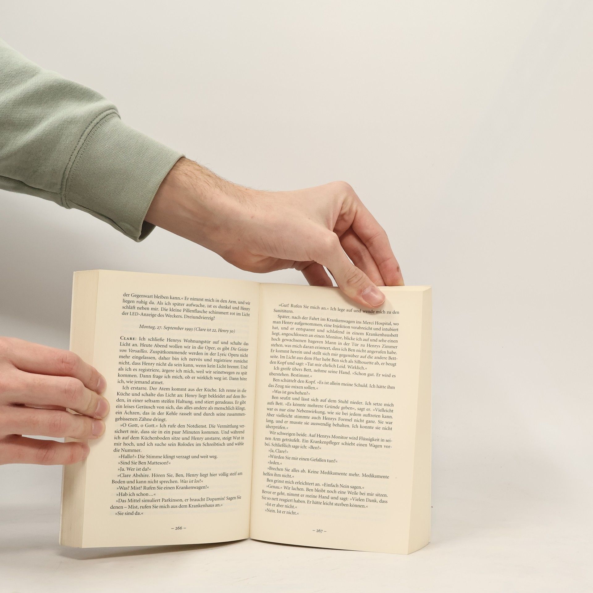 Clare fällt aus allen Himmeln, jedes Mal aufs Neue, wenn Henry vor ihr steht. Denn Henry ist ein Zeitreisender. Plötzlich und unerwartet stürzt er los in eine andere Zeit, aber immer wieder landet er bei Clare, Clare als Kind, als Geliebte und Mutter der gemeinsamen Tochter Alba, Clare als alte Frau, aber da ist er schon lange tot. Seine Zeitreisen sind das Geheimnis, das die Liebenden mit jeder Trennung noch inniger vereint. Audrey Niffenegger ist es gelungen, über die Schönheit der Dauer und das Staunen der Sehnsucht zu schreiben, von der Liebe wie zum ersten Mal zu erzählen. Ein Roman zum Verlieben.