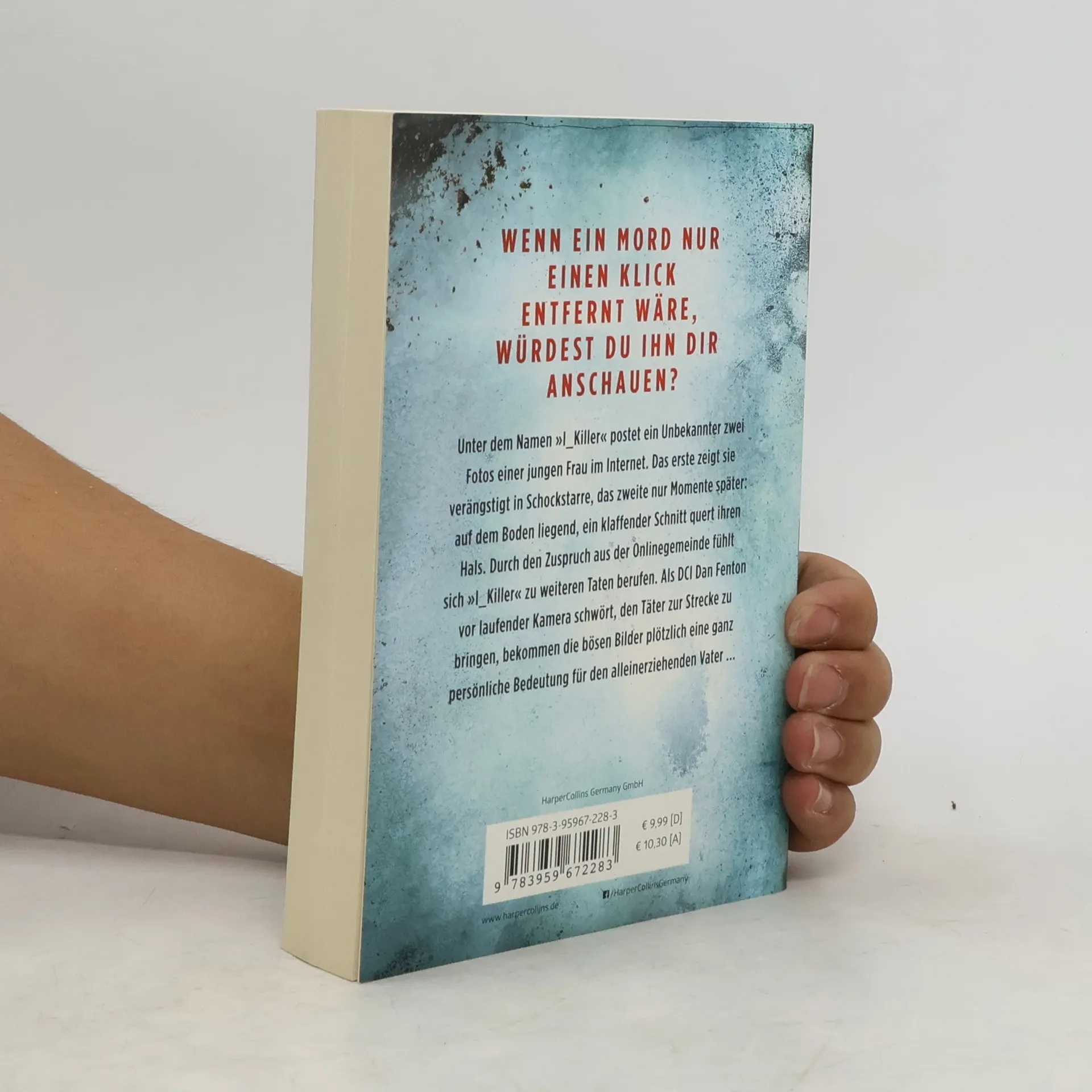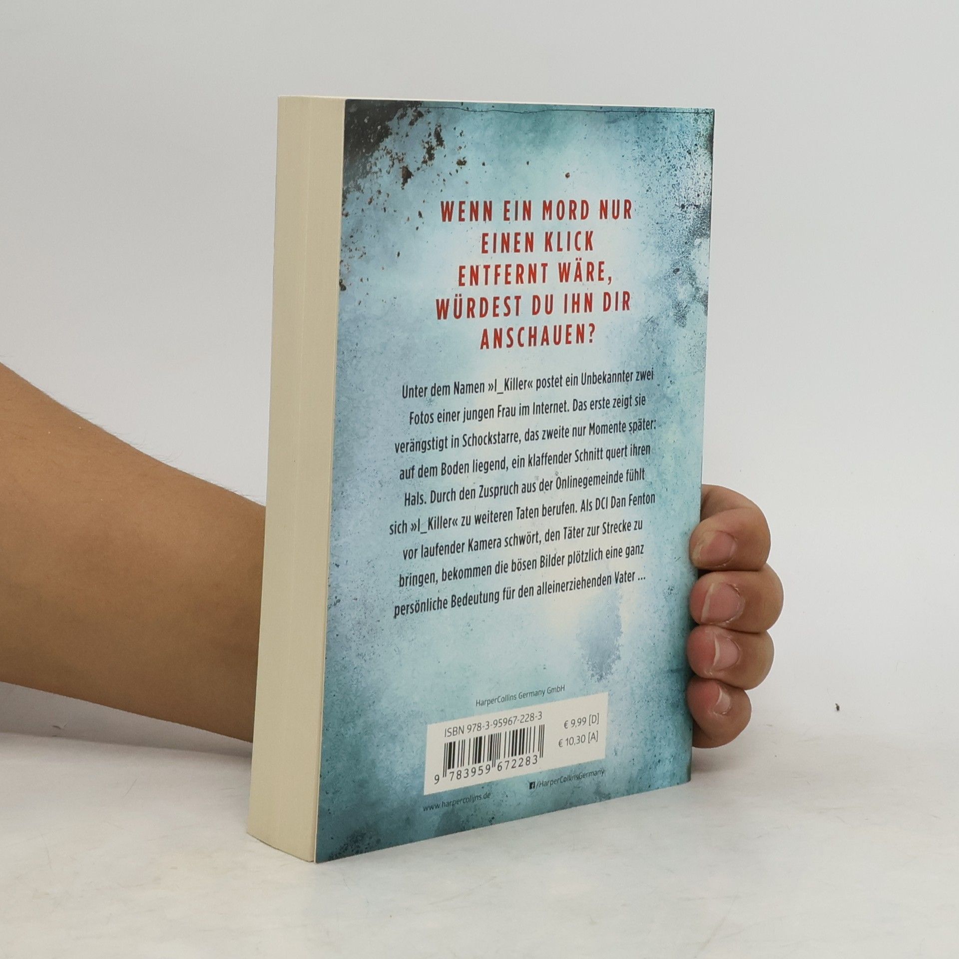 Unter dem Namen »I_Killer« postet ein Unbekannter zwei Fotos einer jungen Frau im Internet. Das erste zeigt sie verängstigt in Schockstarre, das zweite nur Momente später: auf dem Boden liegend, ein klaffender Schnitt quert ihren Hals. Durch den Zuspruch aus der Onlinegemeinde, fühlt sich »I_Killer« zu weiteren Taten berufen. Als DCI Dan Fenton vor laufenden Kameras schwört, den Täter zur Strecke zu bringen, bekommen die bösen Bilder plötzlich eine ganz persönliche Bedeutung für den alleinerziehenden Vater …