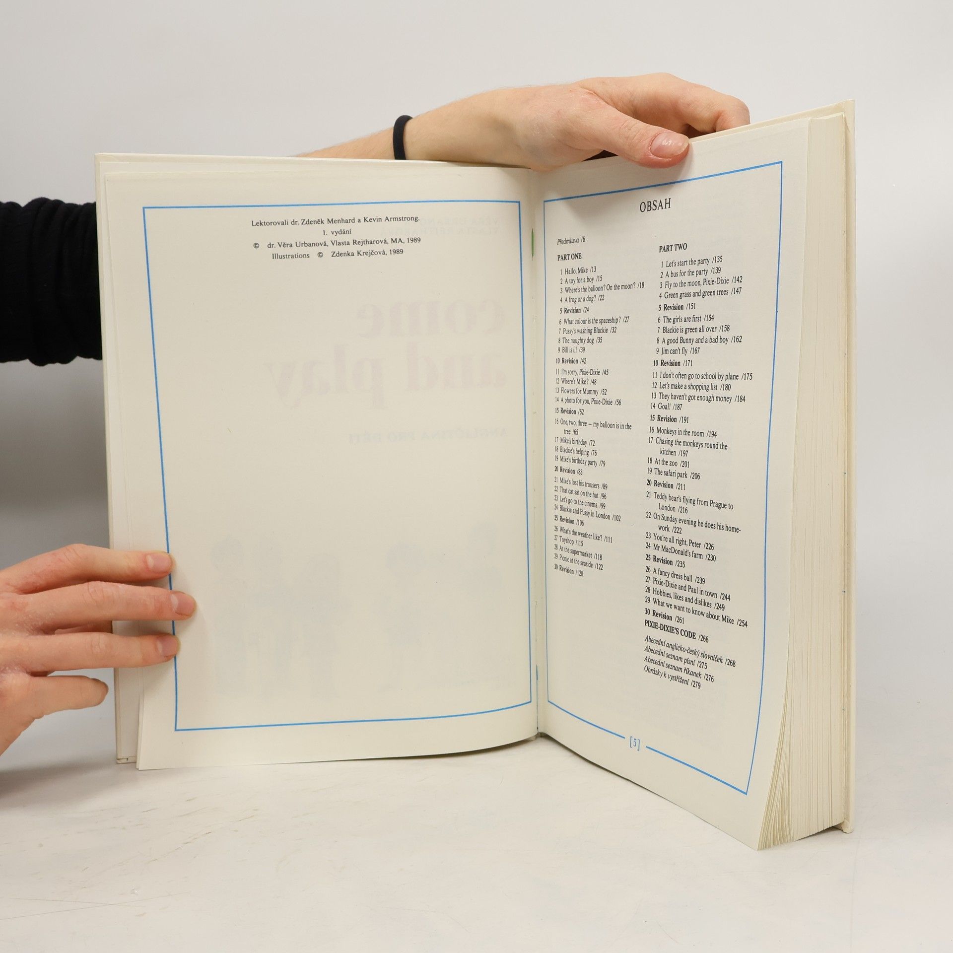 PhDr. Věra Urbanová, Vlasta Rejtharová, MA: Come and play - angličtina pro děti, 3. vydání. První díl učebnice je určen dětem předškolního věku, případně i dětem starším (až osmiletým), druhý díl pak jen dětem, které se již obeznámily se čtením a psaním v mateřském jazyce. Každý z obou dílů obsahuje 30 lekcí. Každá pátá lekce je věnována opakování. Tématické okruhy jsou blízké dětem a jsou zaměřeny tak, aby v maximální míře odpovídaly dětské fantazii a zálibě v příbězích se zápletkou a pointou. Téměř všechny situace v textu jsou doplněny obrázky; na konci učebnice jsou zařazeny obrázky určené k vystřihování. Cílem výuky má být především osvojení komunikativních dovedností. K tomu může přispět i řada písní, her a říkanek. Na konci učebnice je uveden jejich abecední seznam a též abecední slovníček. Zvukovou nahrávku k učebnici vydává Supraphon. Děti si též mohou pořídit "scrap book", sešitek, do kterého si mohou nalepovat obrázky vztahující se k probírané látce. Nebo tzv. "work book", což je pracovní kniha k učebnici "Come and play".