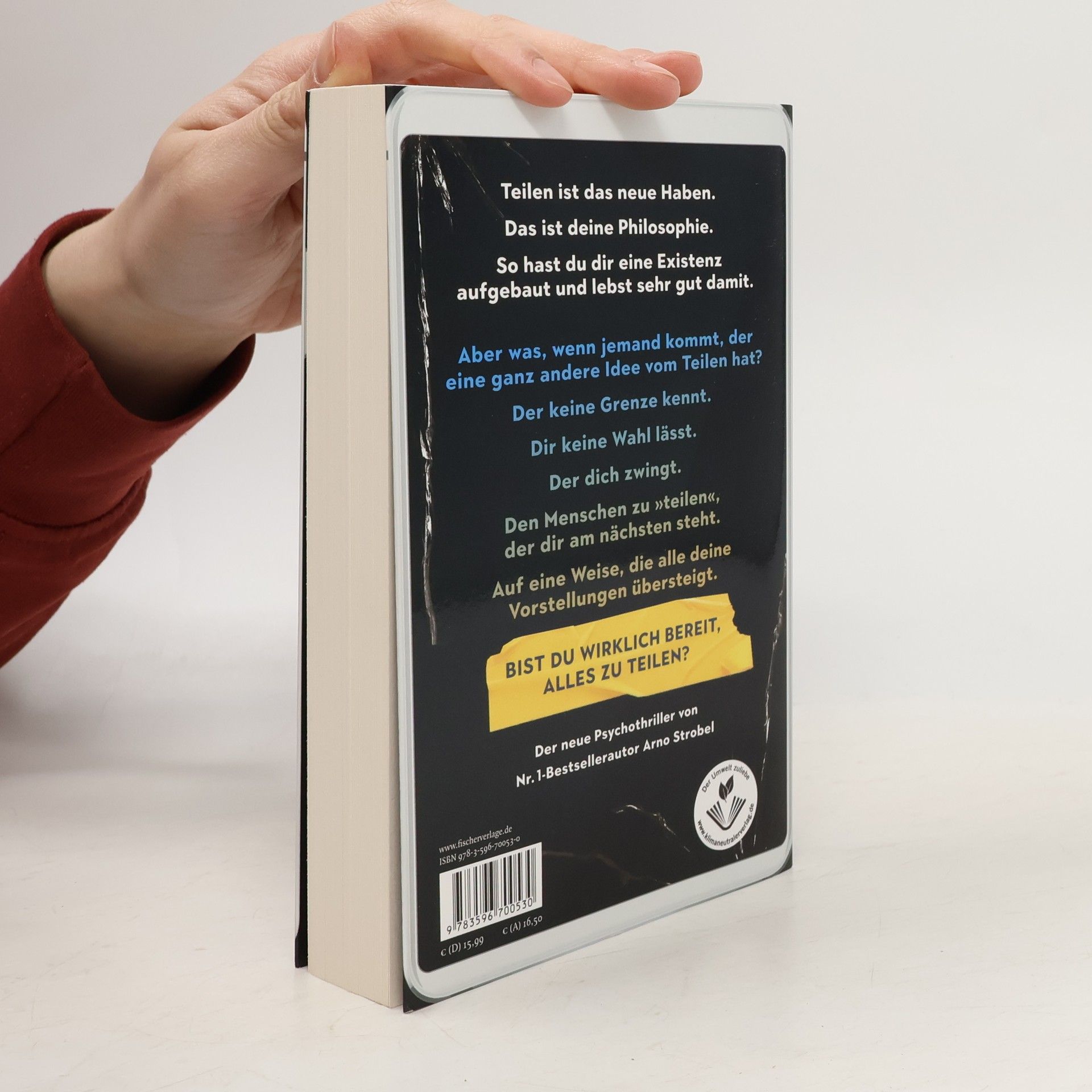 Du glaubst an die Idee der gemeinsamen Nutzung. Aber was, wenn du gezwungen wirst, den Menschen zu »teilen«, der dir am nächsten steht? Der neue Psycho-Thriller von Nr.1-Bestseller-Autor Arno Strobel, Gewinner des Krimi-Publikumspreises MIMI 2023 Markus und seine Frau Bettina fanden den Gedanken, dass man nicht alles besitzen muss, um es zu nutzen, schon immer gut. Diese Philosophie liegt auch ihrem Sharing-Unternehmen zugrunde. Möglichst viele sollen Autos und Wohnungen teilen und so für mehr Nachhaltigkeit sorgen. Bis Bettina in die Hand eines Unbekannten gerät, im Darknet öffentlich misshandelt wird und das Teilen plötzlich eine andere Dimension annimmt. Wenn Markus seine Frau lebend wiedersehen will, muss er tun, was Bettinas Peiniger sagt. Ausnahmslos, bedingungslos. Und ein Spiel mitspielen, das er nicht gewinnen kann. Auch wenn er bereit ist, alles auf eine Karte zu setzen. »Bei Arno Strobels Thrillern brauchen Sie kein Lesezeichen, man kann sie sowieso nicht aus der Hand legen. Packend und nervenzerreißend!« Sebastian Fitzek