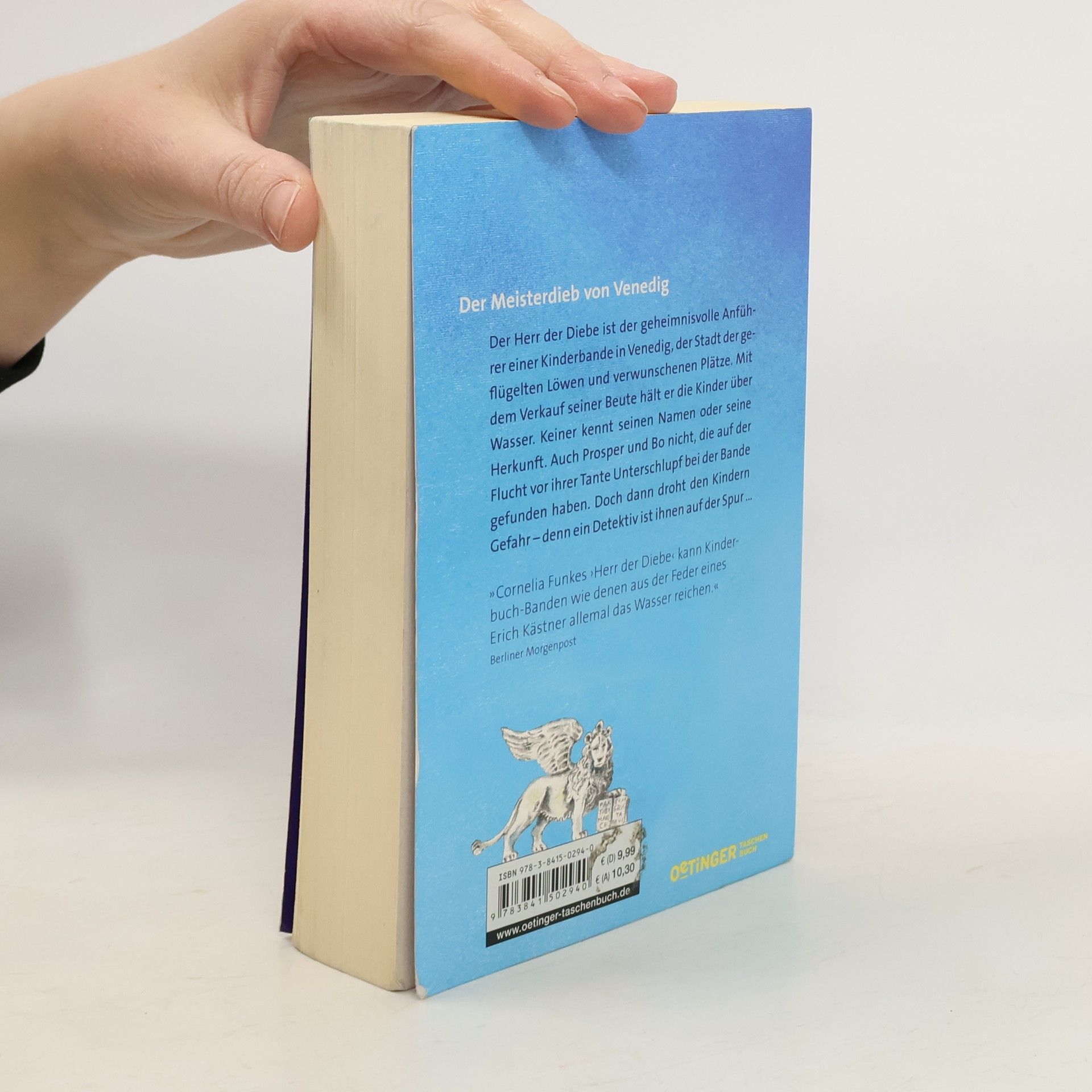„Du bist also wirklich der Herr der Diebe“, sagte der Fremde leise. „Nun gut, behalte deine Maske auf, wenn du dein Gesicht nicht zeigen möchtest. Ich sehe auch so, dass du sehr jung bist.“ Der Herr der Diebe - das ist der geheimnisvolle Anführer einer Kinderbande in Venedig, die er mit dem Verkauf der Beute aus seinen Raubzügen über Wasser hält. Keiner kennt seinen Namen, seine Herkunft. Auch nicht Prosper und Bo - zwei Ausreißer, die auf der Flucht vor ihrer Tante und dem Detektiv Victor Unterschlupf bei der Bande gefunden haben. Als Victor den Kindern tatsächlich auf die Spur kommt, bringt er dadurch alle in Gefahr. Aber endgültig scheint die Gemeinschaft der Bande aufzubrechen, als ein rätselhafter Auftrag, erteilt von dem mysteriösen „Conte“, die Kinder auf eine Laguneninsel führt. Diese Insel, von außen unbewohnt und einsam scheinend, birgt ein Geheimnis, das alles verändert. Cornelia Funke, die schon mit ihrem zum Bestseller gewordenen Titel DRACHENREITER zeigte, welch weiten Atem ihr Erzähltalent hat, hält ihre Leser - gleich welchen Alters - auch mit diesem Buch von der ersten Zeile an gefangen. Sie führt uns durch ein winterliches Venedig, verstrickt uns in verwirrende Rätsel und erfüllt ihren Helden am Schluss einen alten Menschheitstraum.