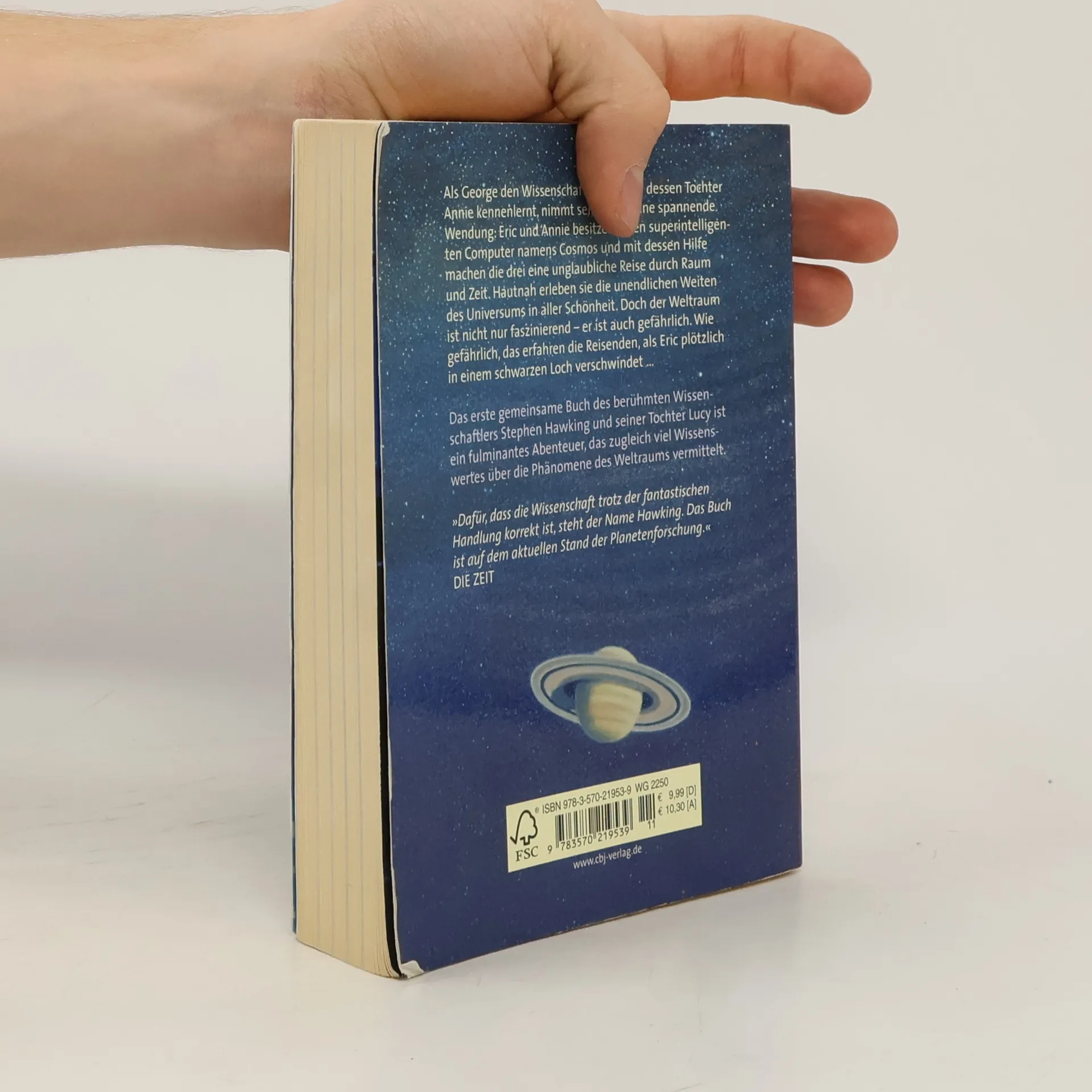 Stephen Hawking erklärt die Geheimnisse des Universums in einer aufregenden Abenteuerreise durch Zeit und Raum. George trifft den Wissenschaftler Eric und dessen Tochter Annie, die einen superintelligenten Computer namens Cosmos besitzen, der die Tür ins Universum öffnet. Gemeinsam reisen sie durch das All, reiten auf Kometen, umkreisen den Saturn und beobachten ein Schwarzes Loch – bis der skrupellose Wissenschaftler Reeper von ihrem Geheimnis erfährt. Dieses fulminante Abenteuer entführt in die faszinierende Welt der Astronomie. Georges Weltraumreise vermittelt spannendes Wissen über Sonnenflecken und die Ringe des Saturn. Sachinformationen ergänzen die Erzählung, während atemberaubende Fotostrecken die Leser über Himmelsphänomene staunen lassen. Astronomie wird so verständlich für Kinder. Das Buch ist eine unterhaltsame Einführung in die aufregendsten Aspekte der Astrophysik, die sowohl Kinder als auch Erwachsene fesselt. Infokästen erklären wichtige astronomische Begriffe, und beeindruckende Fotos sowie zahlreiche Sachillustrationen bieten faszinierende Einblicke in die Astronomie. Die Reihe umfasst mehrere Bände, die unabhängig voneinander gelesen werden können. Alle Bücher sind mit farbigen Fotos ausgestattet und bieten ein spannendes Leseerlebnis für junge Entdecker.