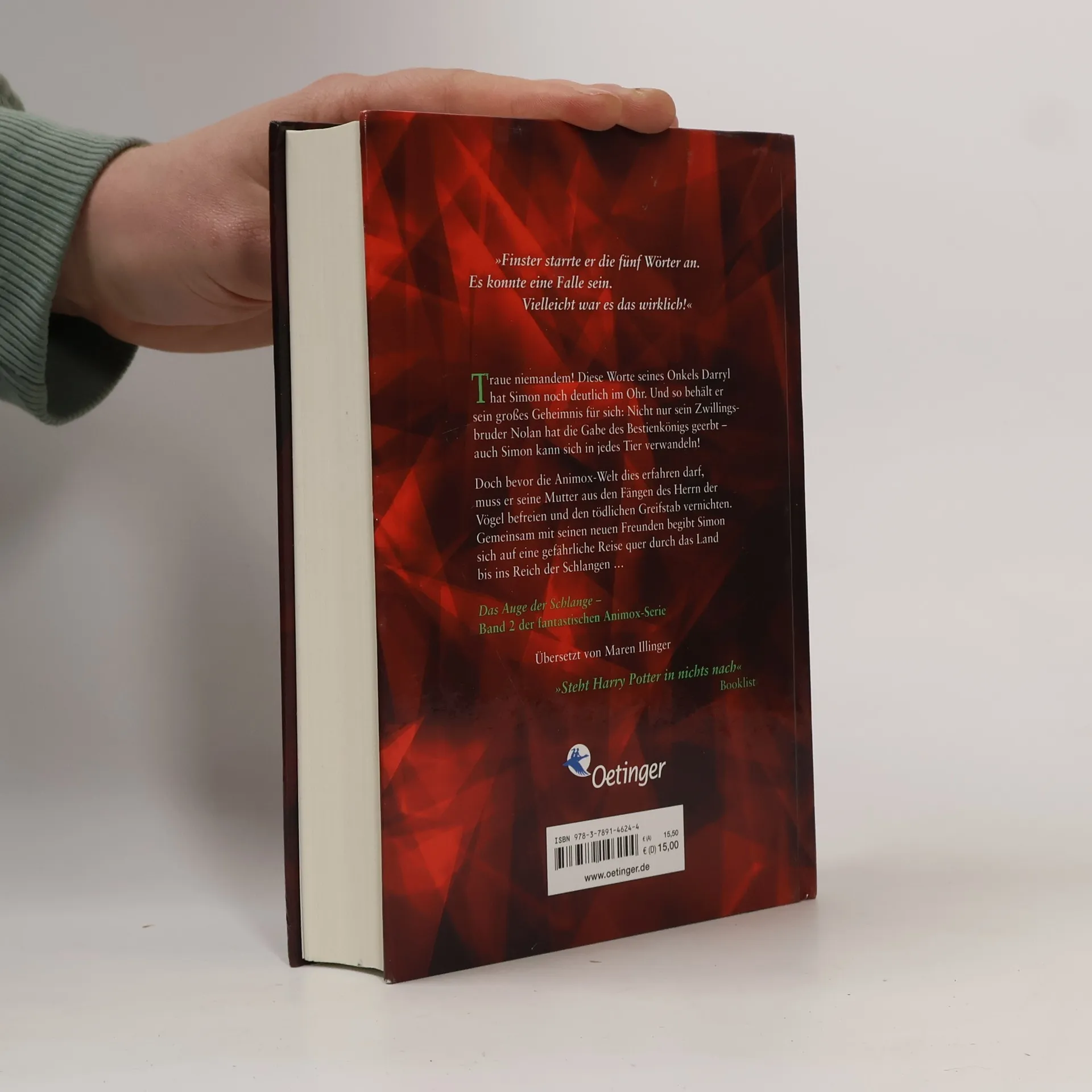 Tier-Fantasy der Spitzenklasse, das Abenteuer geht weiter! Simon ist ein Animox, ein Mensch, der sich in Tiere verwandeln kann. Er steckt mittendrin im Kampf der Tierreiche. Zusammen mit seinen Freunden begibt er sich auf die gefährliche Suche nach den verschollenen Stücken der Waffe des legendären Bestienkönigs. Diese Suche führt Simon mitten hinein in eine bedrohliche Schlangengrube. Zum Glück gelingt es ihm, hier das gesuchte Stück der Waffe zu bergen. Doch damit ist das Abenteuer noch nicht beendet.