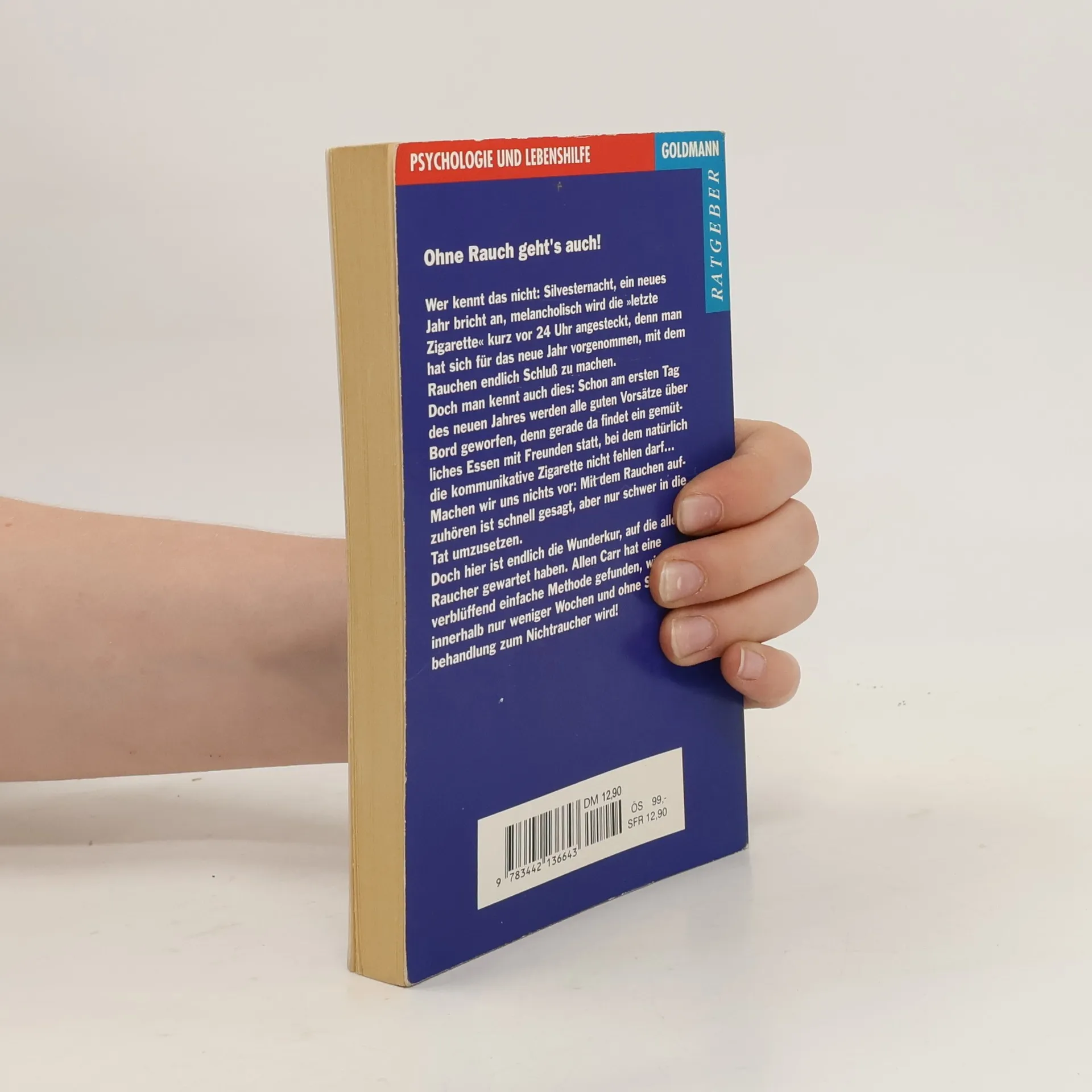 Kaum ein Raucher, der nicht schon einmal den Entschluss gefasst hat, mit dem Rauchen aufzuhören - und kaum einer, der nicht früher oder später seine guten Vorsätze wieder über den Haufen geworfen hat. All jenen, die bereit sind, mit dem blauen Dunst endgültig Schluss zu machen, zeigt dieses Buch den Weg. Mit Allen Carrs sensationeller und weltweit bekannter „Easyway“-Methode kann jeder in wenigen Wochen und ohne übermenschliche Willensanstrengung die körperliche und psychische Sucht überwinden, indem er seine Abhängigkeit kritisch hinterfragt und ihr schließlich aus Überzeugung den Rücken kehrt.
