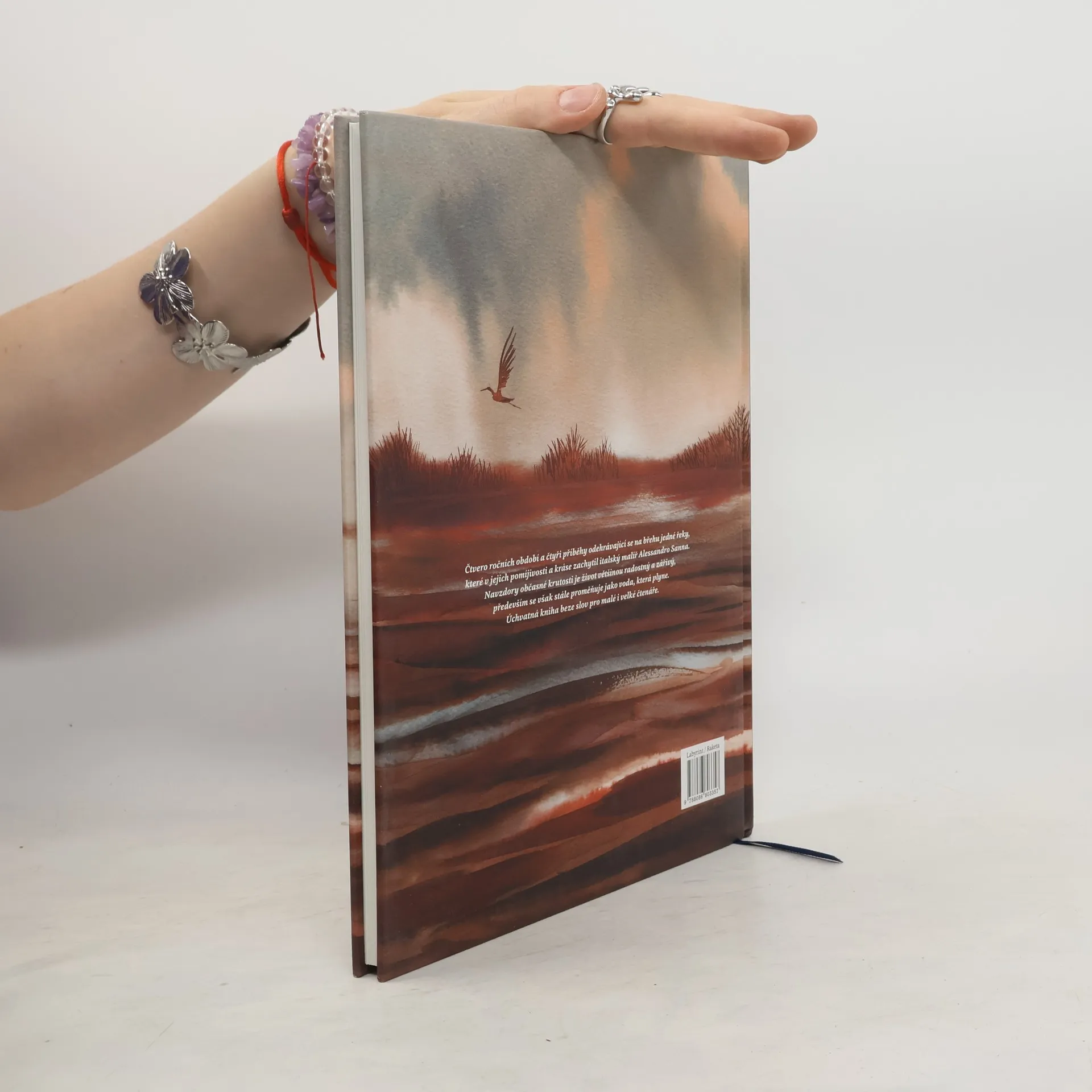Čtvero ročních období a čtyři příběhy odehrávající se na břehu jedné řeky, které v jejich pomíjivosti a kráse zachytil italský malíř Alessandro Sanna. Navzdory občasné krutosti je život většinou radostný a zářivý, především se však stále proměňuje jako voda, která plyne. Úchvatná kniha beze slov pro malé i velké čtenáře. Téměř 400 akvarelových obrázků je řazeno formou komiksových panelů.