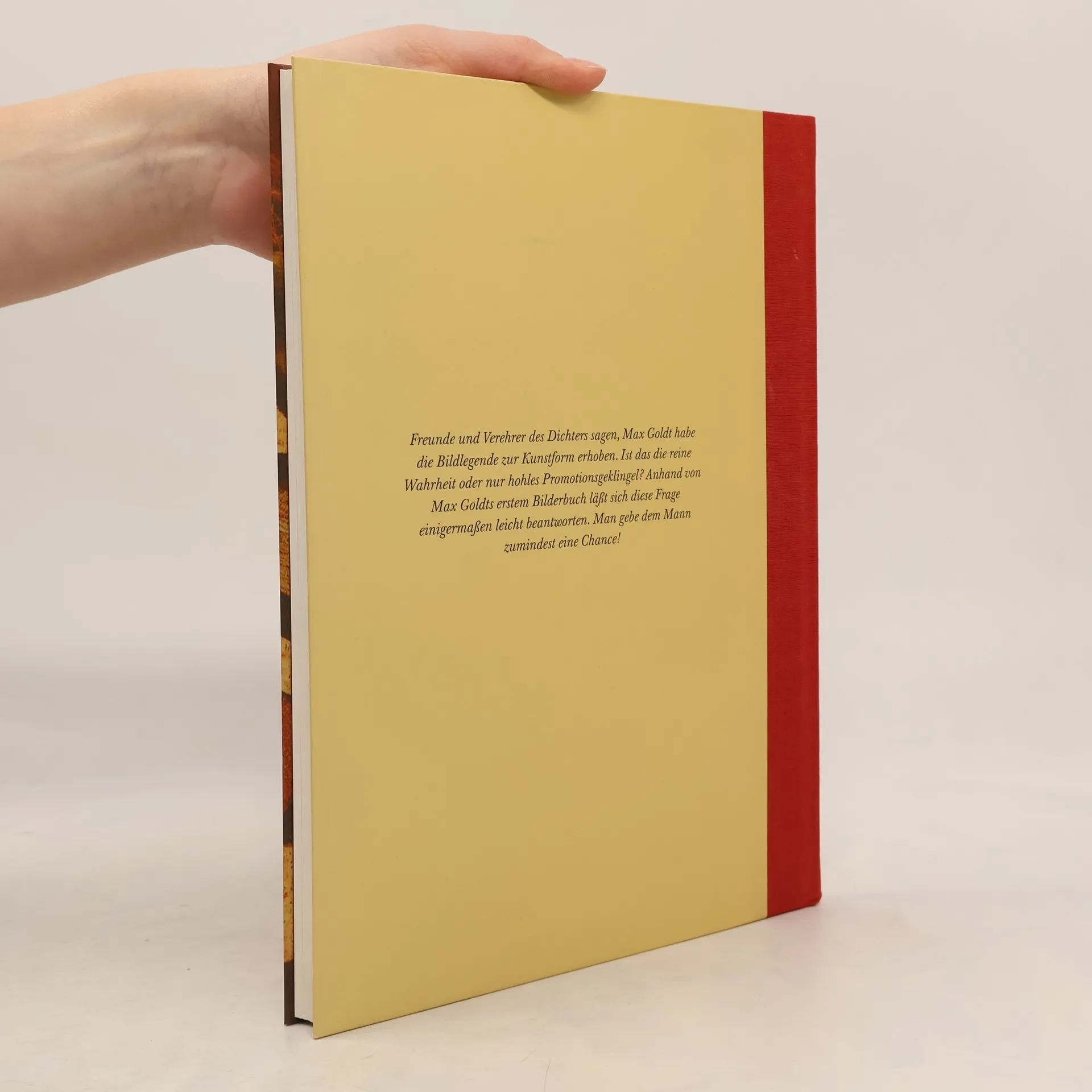 Freunde und Verehrer des Dichters sagen, Max Goldt habe die Bildlegende zur Kunstform erhoben. Ist das die reine Wahrheit oder nur hohles Promotionsgeklingel? Anhand von Max Goldts erstem Bilderbuch läßt sich diese Frage einigermaßen leicht beantworten. Man gebe dem Mann zumindest eine Chance!