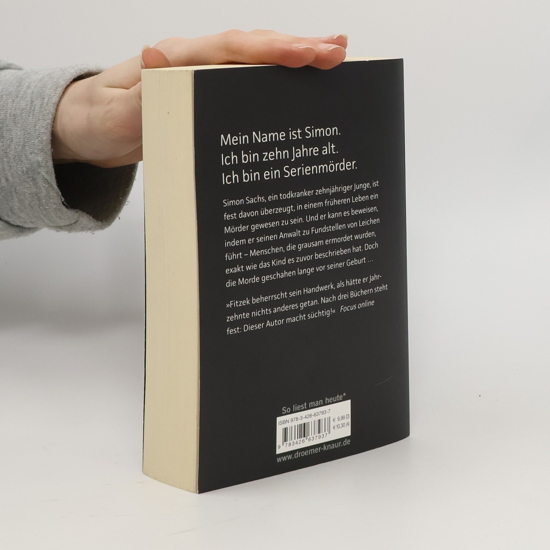 Robert Stern ahnt nicht, dass sein Treffen mit einem geheimnisvollen Mandanten auf einem abgelegenen Industriegelände ihn mit dem Tod konfrontieren wird. Der Mandant ist Simon, ein zerbrechlicher, todkranker zehnjähriger Junge, der überzeugt ist, in einem früheren Leben ein Mörder gewesen zu sein. Sterns Verwirrung verwandelt sich in Entsetzen, als er in einem von Simon beschriebenen Keller tatsächlich menschliche Überreste findet: ein Skelett mit einem gespaltenen Schädel. Dies ist nur der Anfang, denn Simon berichtet von weiteren, vor Jahren hingerichteten Opfern, und bald wird die Gegenwart ebenfalls mörderisch. Dieser Psychothriller ist hochspannend und unerwartet, mit Wendungen, die den Leser fesseln. Sebastian Fitzek gelingt es, mit ungewöhnlichen Figuren und einer packenden Handlung zu überzeugen. Sein Geschick, Spannung aufzubauen, sorgt dafür, dass dieser Roman den Schlaf raubt. Fitzek beherrscht sein Handwerk meisterhaft und hat sich als süchtig machender Autor etabliert.