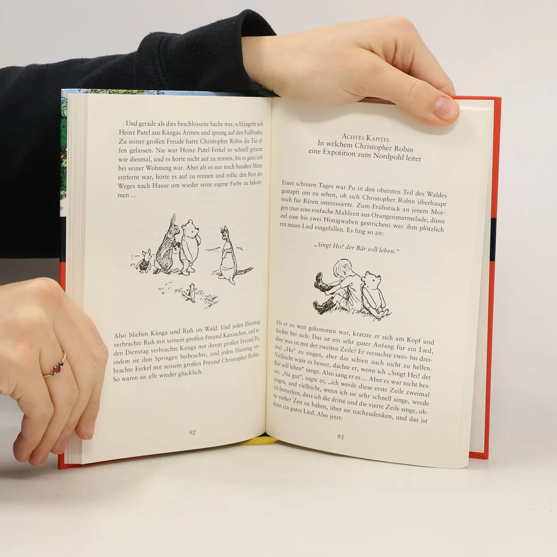 Hier kommt Pu der Bär, Christopher Robins bester Freund, mit all seinen Bekannten aus dem Sechzig-Morgen-Wald! Da gibt es Ferkel mit dem kleinen Mut, den griesgrämigen Esel I-Ah, Kaninchen, die zischende Eule und all die anderen. Selbst Känga, der nachgesagt wird, dass sie ihre Familie in der Tasche herumschleppt, schließt mit Pu Freundschaft - immer wieder dienstags, wenn Klein Ruh seinen großen Freund Kaninchen besucht...