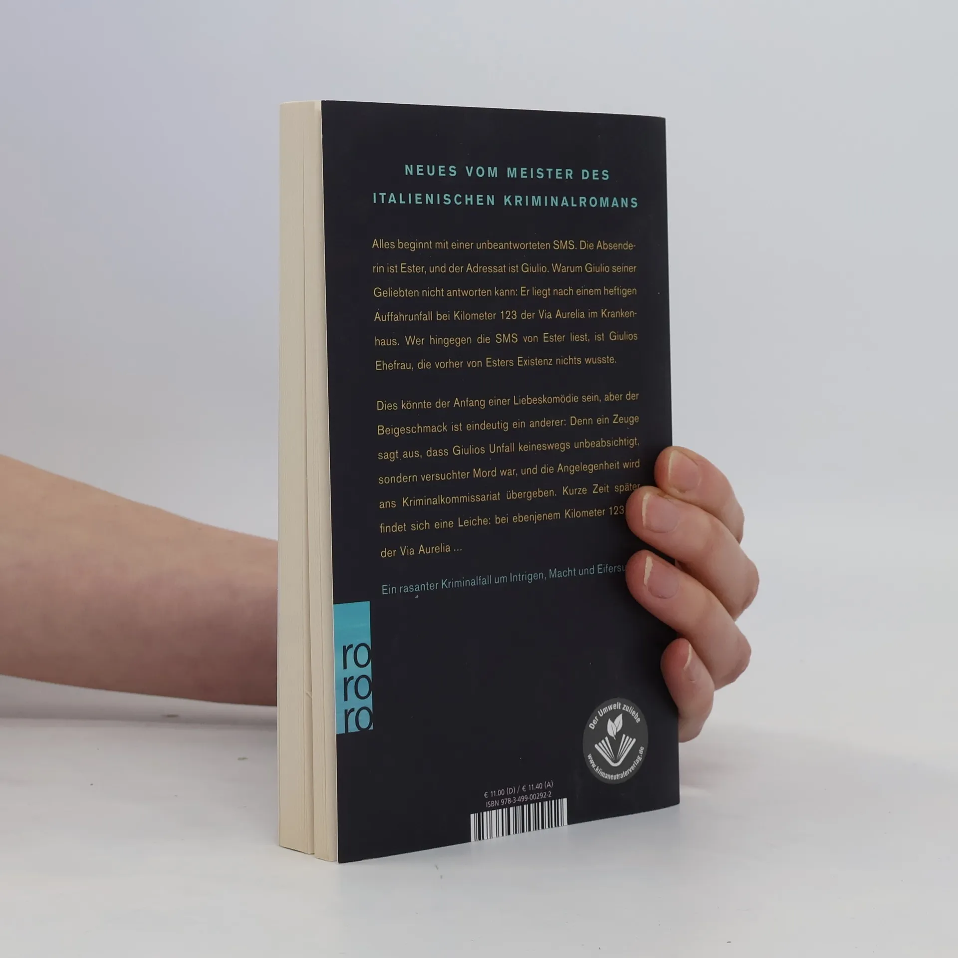 Neues vom Meister des italienischen Kriminalromans: Ein rasanter Fall um Intrigen, Macht und Eifersucht. Alles beginnt mit einer unbeantworteten SMS. Die Absenderin ist Ester, und der Adressat ist Giulio. Warum Giulio seiner Geliebten nicht antworten kann: Er liegt nach einem heftigen Auffahrunfall bei Kilometer 123 der Via Aurelia im Krankenhaus. Wer hingegen die SMS von Ester liest, ist Giulios Ehefrau, die vorher von Esters Existenz nichts wusste. Dies könnte der Anfang einer Liebeskomödie sein, aber der Beigeschmack ist ein anderer: Denn ein Zeuge sagt aus, dass Giulios Unfall keineswegs unbeabsichtigt, sondern versuchter Mord war, und die Angelegenheit wird ans Kriminalkommissariat übergeben. Kurze Zeit später findet sich eine Leiche: bei ebenjenem Kilometer 123 auf der Via Aurelia ...