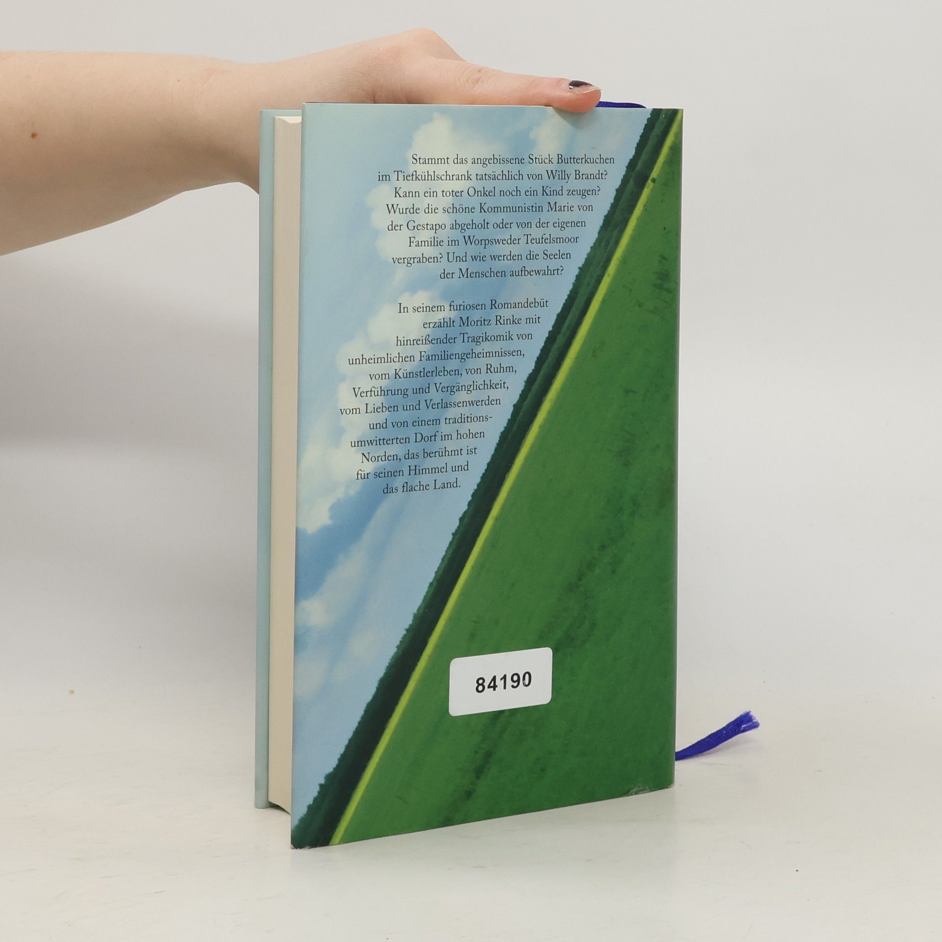 Stammt das angebissene Stück Butterkuchen im Tiefkühlschrank tatsächlich von Willy Brandt? Kann ein toter Onkel noch ein Kind zeugen? Wurde die schöne Kommunistin Marie von der Gestapo abgeholt oder von der eigenen Familie im Teufelsmoor vergraben? Und wie werden die Seelen der Menschen aufbewahrt? Paul Wendland möchte in Berlin mit seinem Leben und seinen kuriosen Kunstprojekten neu anfangen, doch die Vergangenheit holt ihn ein. In Worpswede drohen das geschichtsträchtige Haus seines Großvaters und sein Erbe im Moor zu versinken – samt lebensgroßen Bronzestatuen von Luther, Bismarck, Max Schmeling und Ringo Starr. Die Rückkehr an den Ort seiner Kindheit, geprägt von einem mörderischen Teufelsmoor und norddeutschem Butterkuchen, nimmt eine verhängnisvolle Wendung. Vergessen geglaubte Familienfragen und historische Gestalten, die aus dem Moor steigen, sowie die skurrile Begegnung mit einem mysteriösen Vergangenheitsforscher bringen ein Netz aus Lügen und Geheimnissen ans Licht. Moritz Rinke behandelt mit sanfter, anarchischer Tragikomik die Lebensmotive, Geschlechter-, Generations- und Identitätskonflikte seiner Figuren. Er erzählt vom Künstlerleben, Ruhm, Verführung und Vergänglichkeit in einem berühmten Dorf im Norden, das für seinen Himmel und das flache Land bekannt ist, und überzeugt als raffinierter Komponist einer überschäumenden, irrwitzigen Realität.