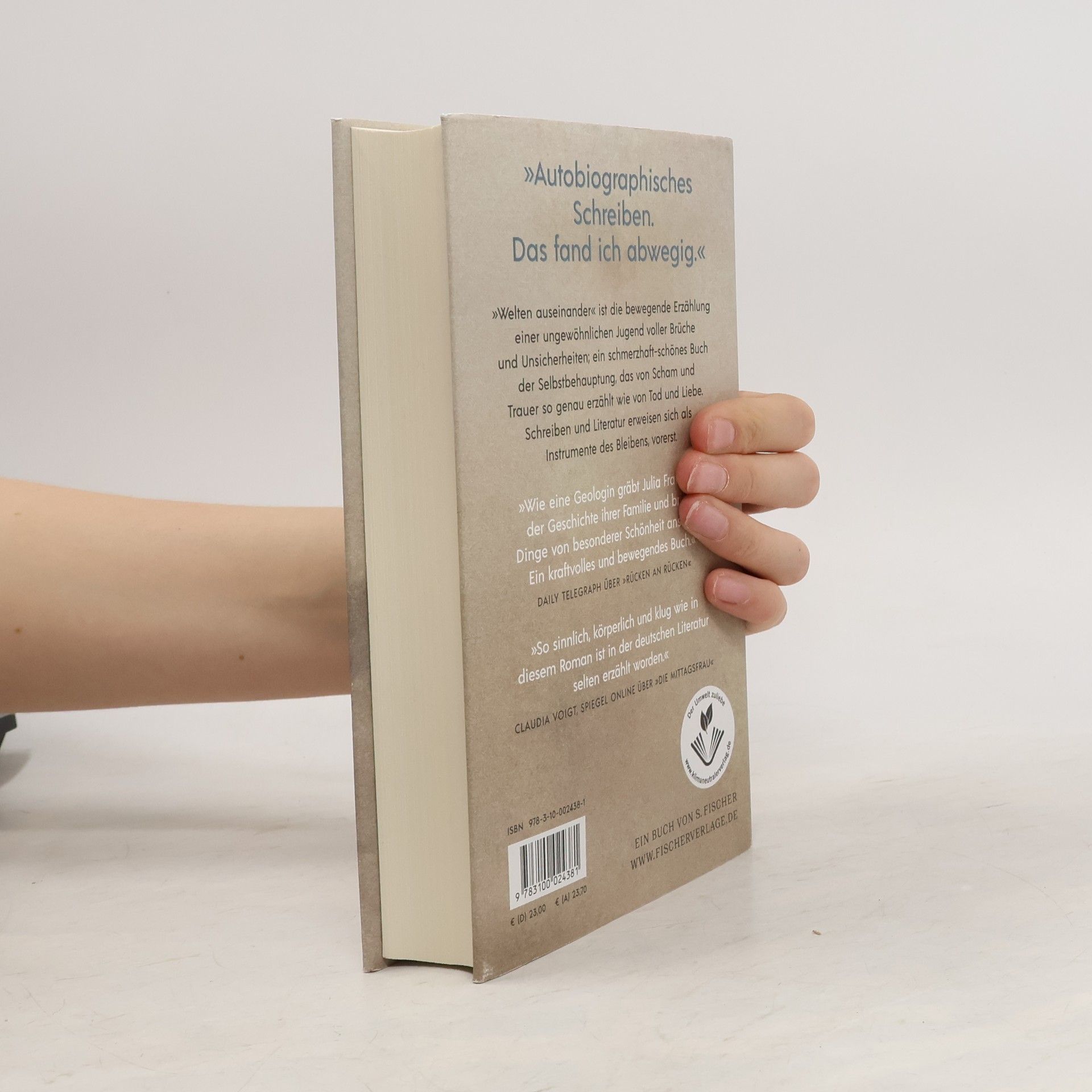 Das Mädchen wird in Ostberlin geboren. Julia ist acht, als ihre Mutter sie und die Schwestern in den Westen, erst ins Notaufnahmelager Marienfelde und dann nach Schleswig-Holstein mitnimmt. In dem chaotischen Bauernhaus kann die Dreizehnjährige nicht länger bleiben und zieht aus, nach Westberlin. Neben der Sozialhilfe verdient die Schülerin Geld mit Putzen, sie lernt ihren Vater kennen und verliert ihn unmittelbar, macht ihr Abitur und begegnet Stephan, ihrer großen Liebe. Wenn sie sich erinnert, ist es Gegenwart. »Welten auseinander« ist Julia Francks bewegende Erzählung einer ungewöhnlichen Jugend voller Brüche und Unsicherheiten; ein schmerzhaft-schönes Buch der Selbstbehauptung, das von Scham und Trauer so genau erzählt wie von Tod und Liebe. Schreiben und Literatur erweisen sich als Instrumente des Bleibens, vorerst.