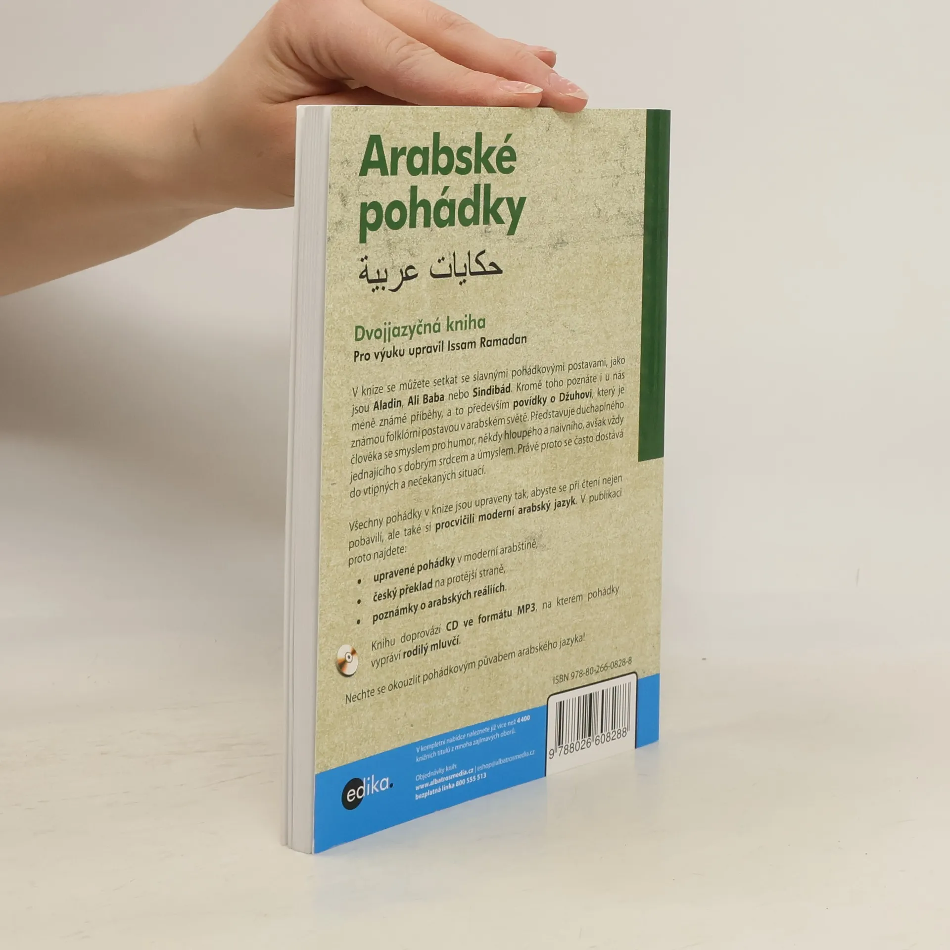 V knize se můžete setkat se slavnými pohádkovými postavami, jako jsou Aladin, Ali Baba nebo Sindibád. Kromě toho poznáte i u nás méně známé příběhy, a to především povídky o Džuhovi, který je známou folklórní postavou v arabském světě. Představuje duchaplného člověka se smyslem pro humor, někdy hloupého a naivního, avšak vždy jednajícího s dobrým srdcem a úmyslem. Právě proto se často dostává do vtipných a nečekaných situací. Všechny pohádky v knize jsou upraveny tak, abyste se při čtení nejen pobavili, ale i procvičili moderní arabský jazyk. V publikaci proto najdete: • upravené pohádky v moderní arabštině, • český překlad na protější straně, • poznámky o arabských reáliích. Nechte se okouzlit pohádkovým půvabem arabského jazyka!
