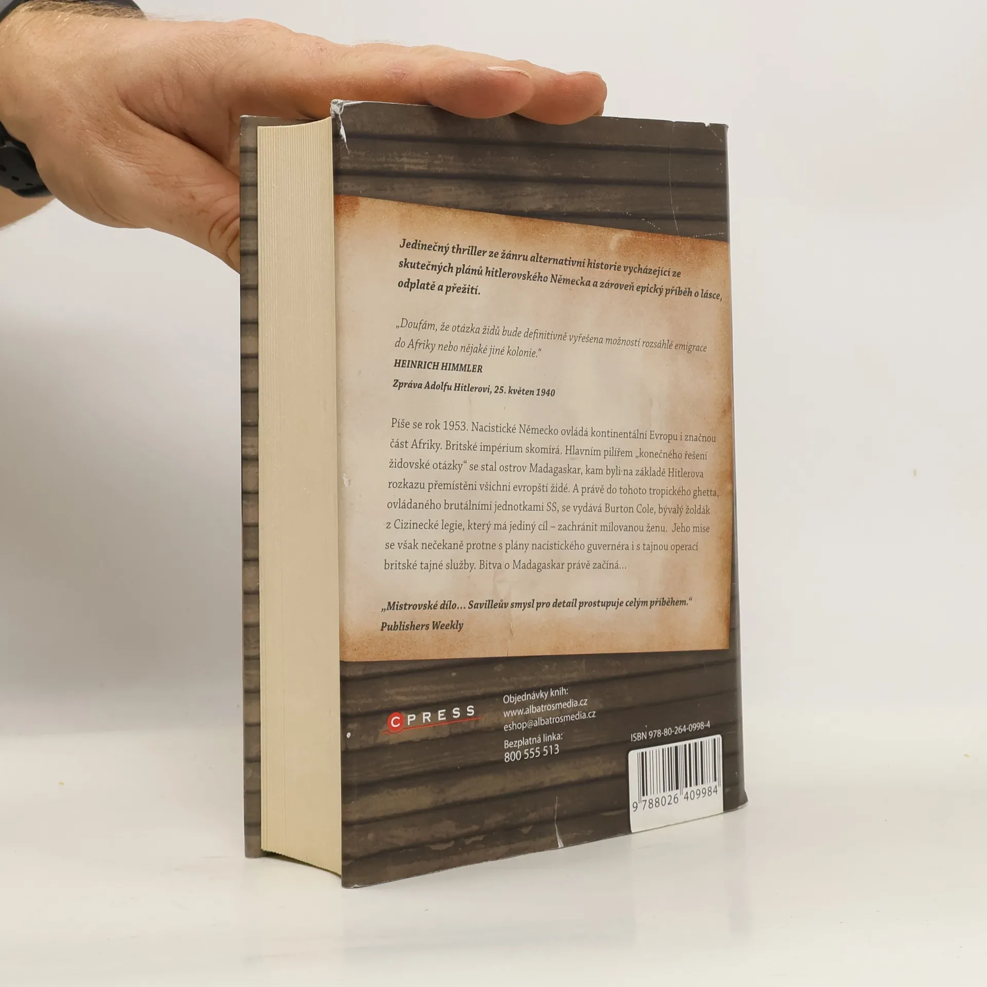Jsem bývalý žoldák. Mou ženu drží nacisté v židovském ghettu na ostrově Madagaskar. Musím ji zachránit! Podaří se mi to dřív, než Britové odhalí tajné Hitlerovy plány? Píše se rok 1953 a dějiny plynou jinak, než je známe... Strhující thriller o velké lásce, pomstě a osudech dvou mužů, kteří ovlivní budoucnost celého světa.