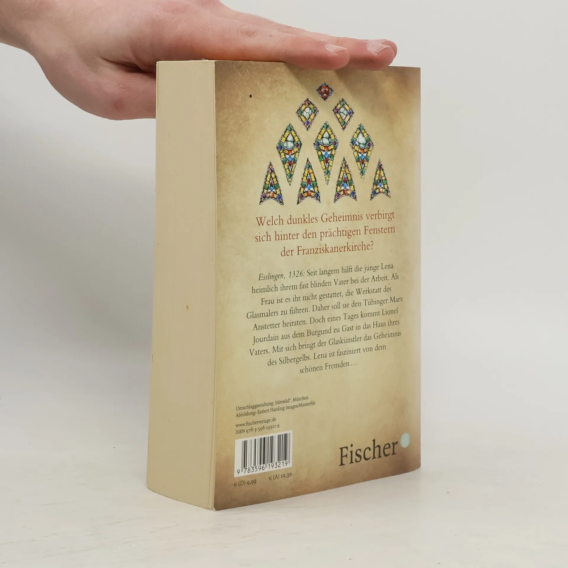 Welch dunkles Geheimnis verbirgt sich hinter den prächtigen Fenstern der Franziskanerkirche? Esslingen, 1326: Ohne die Hilfe seiner Tochter kann der Glasmaler Heinrich Luginsland nicht mehr arbeiten, denn seine Augen werden immer schlechter. Bereits seit drei Jahren hilft Lena ihm heimlich dabei, die Glasfragmente zu bemalen, denn Frauen ist es in Esslingen nicht gestattet, ein Handwerk auszuüben. Daher soll Lena den ihr verhassten Tübinger Glasmaler Marx Anstetter heiraten. Doch da kommt Lionel Jourdain, ein wandernder Künstler aus Frankreich, zu Gast in Heinrich Luginslands Haus. Mit sich bringt er das Geheimnis des Silbergelbs. Lena ist fasziniert von dem schönen Fremden …